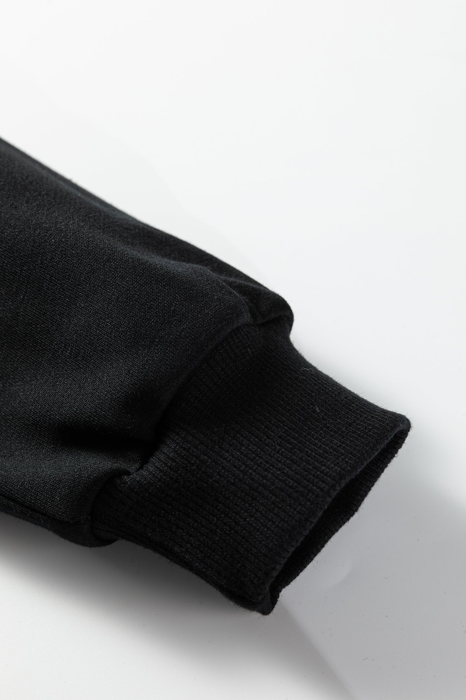 Black Leopard Print Patchwork Varsity Raglan Sleeve Sweatshirt Dress
