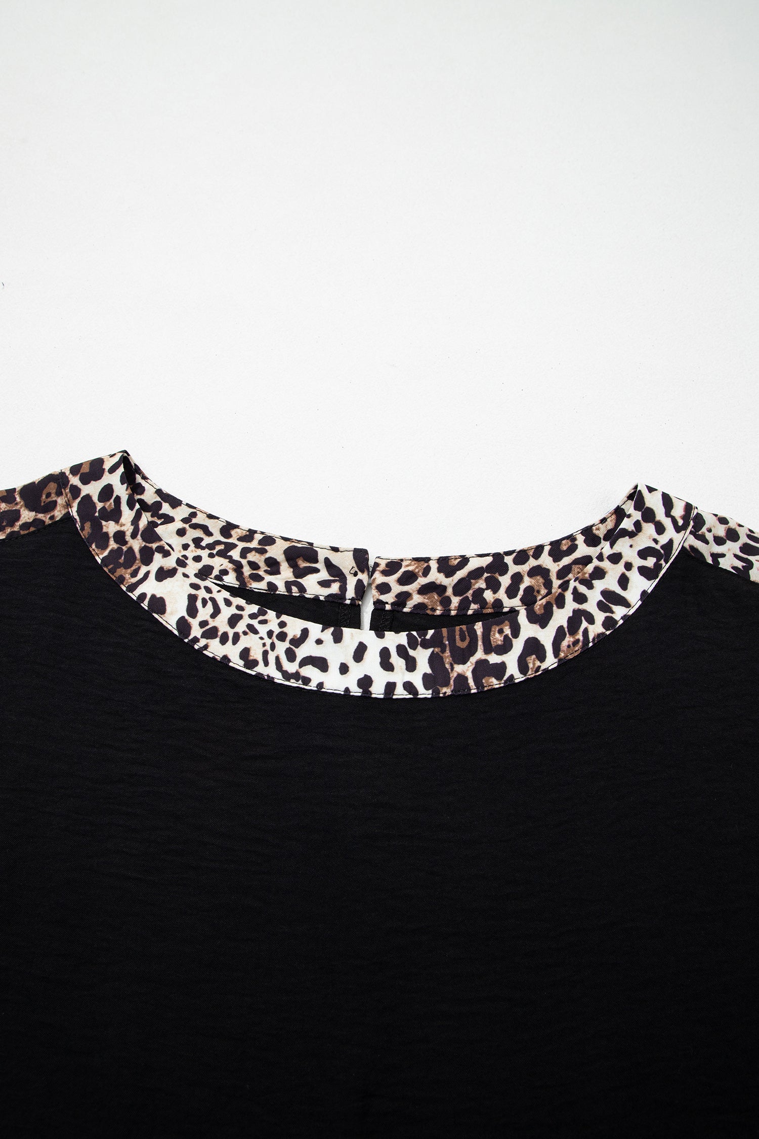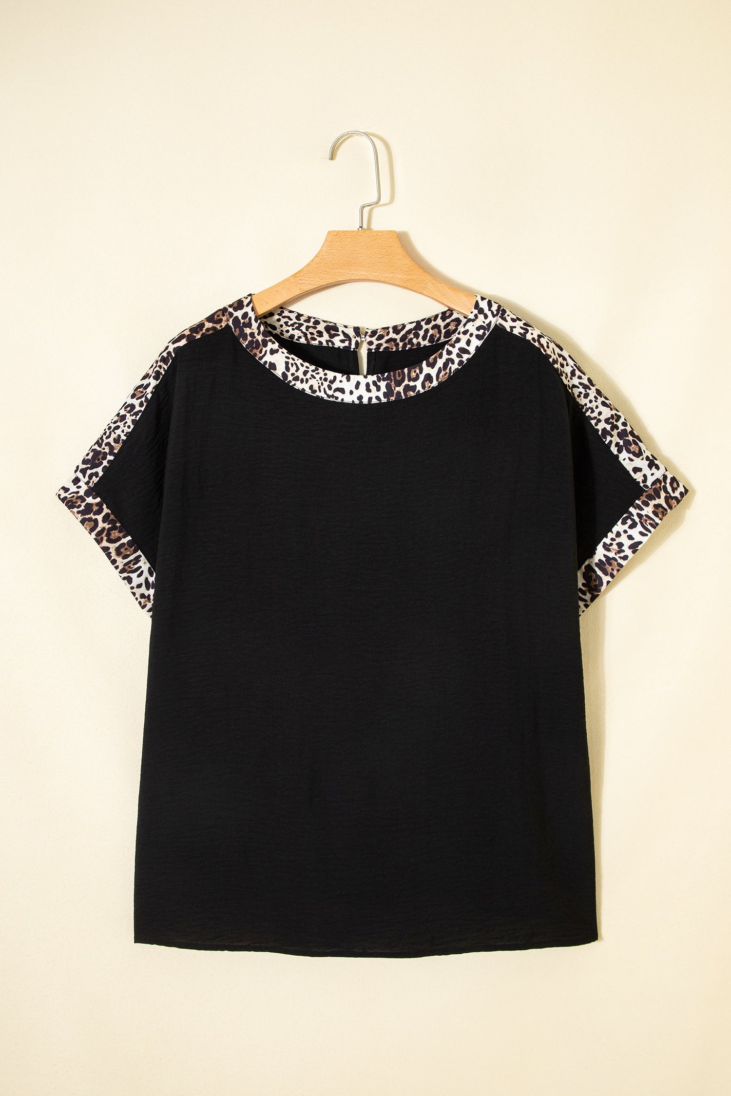 Black Plus Size Leopard Patchwork Round Neck Loose Tee