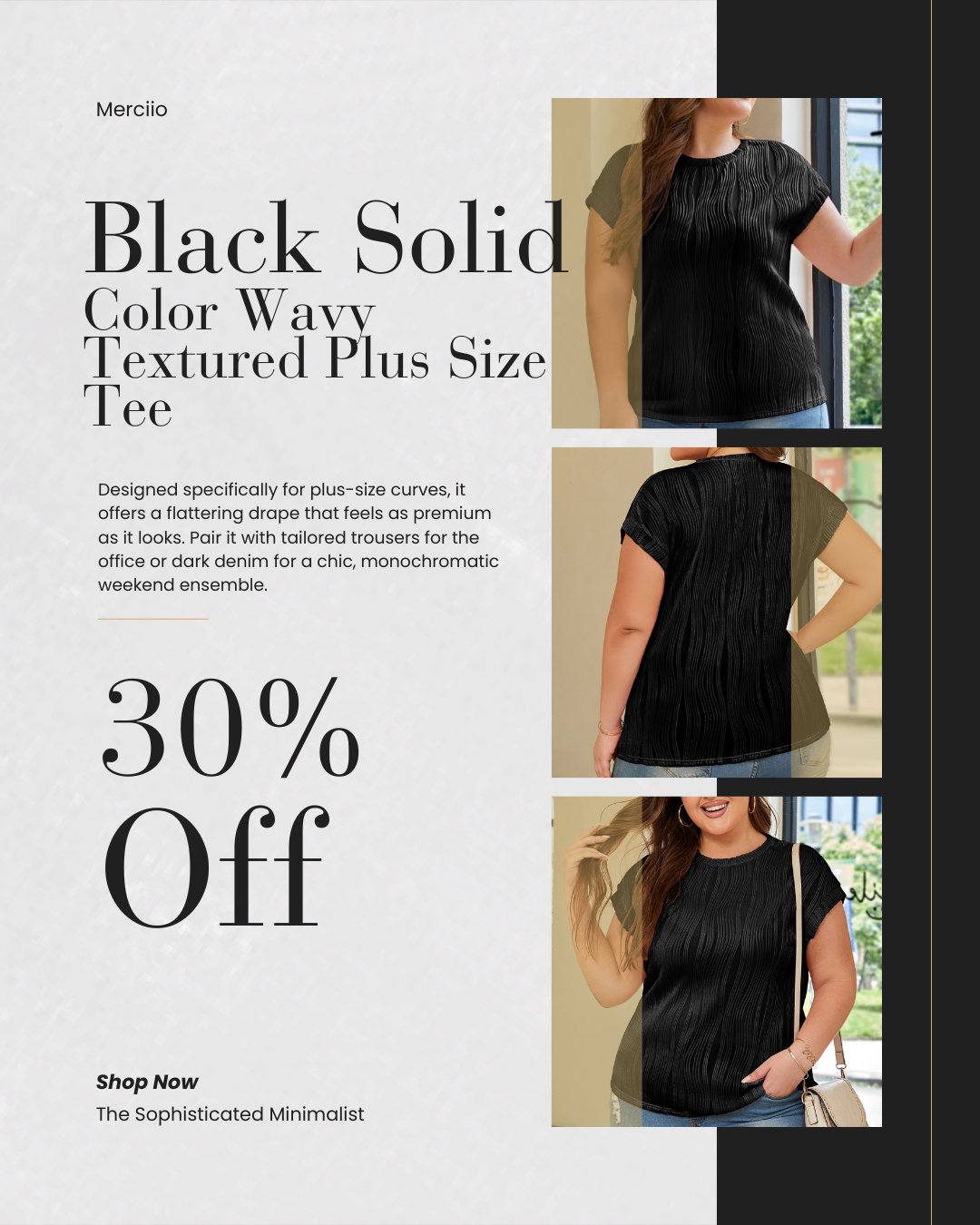 While most "other" brands offer generic, flat cotton tees that can lose their shape and highlight unwanted areas, Merciio’s Wavy Textured Tee is engineered for the plus-size body. Our unique wavy texture doesn't just look premium—it provides a structural thickness that hides undergarment lines and drapes smoothly over your silhouette. Plus, unlike standard tees that shrink or fade, our fabric is chosen for its long-lasting color retention and durability, ensuring your "go-to" black tee stays looking brand new for seasons to come.
