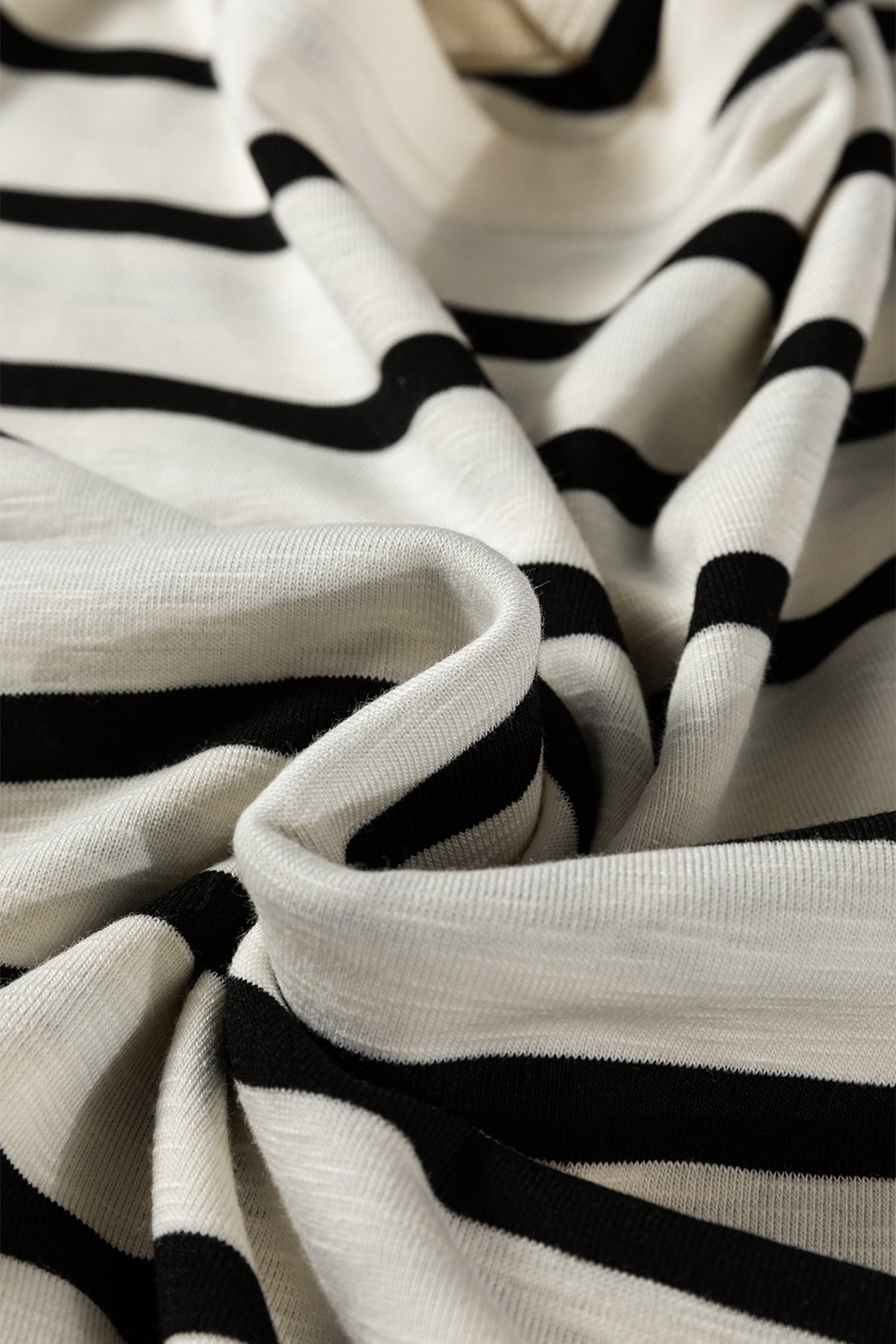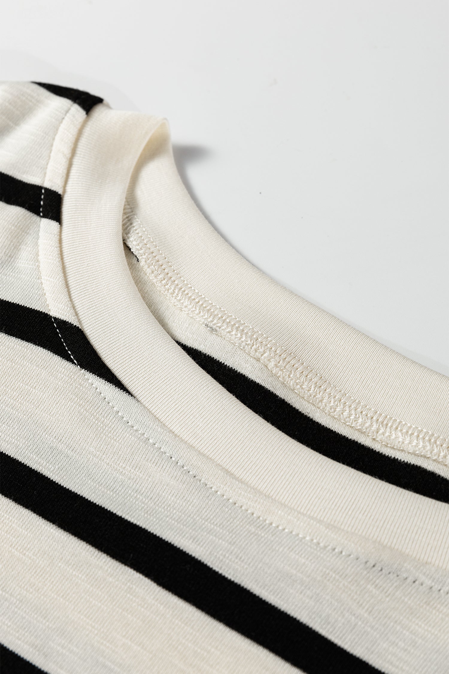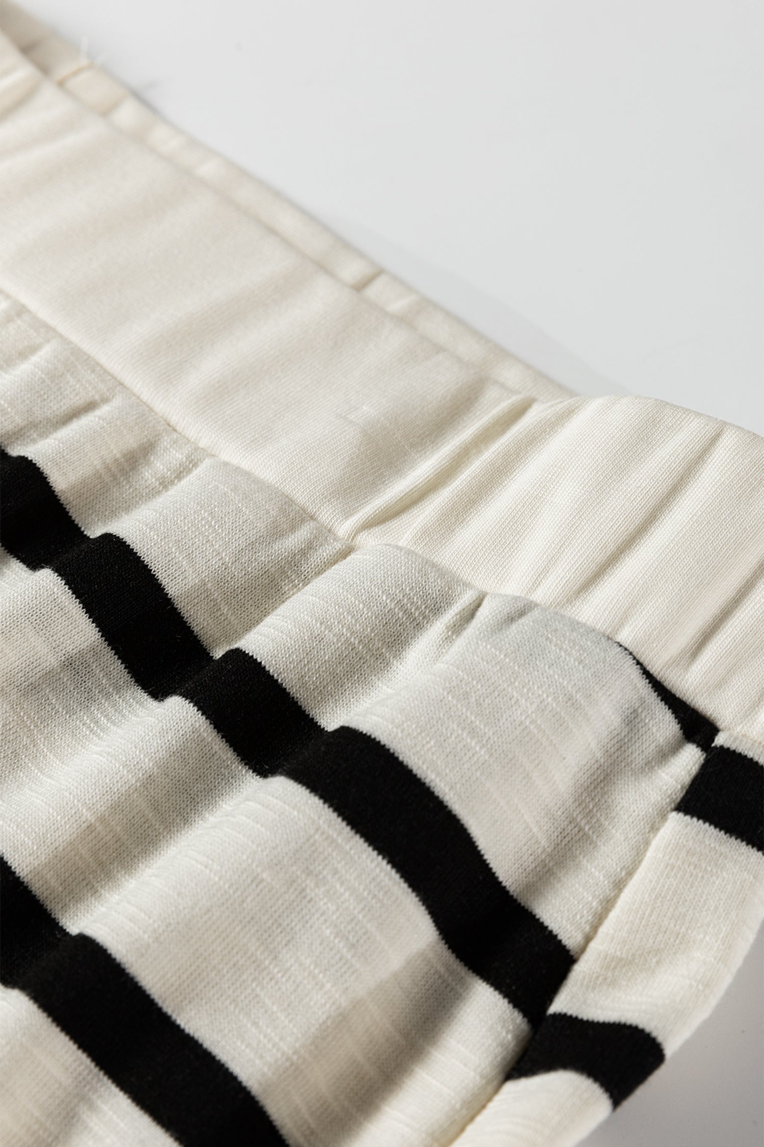 Black Stripe Ribbed Trim Button Cuff Long Sleeve Top Midi Skirt 2pcs Outfit