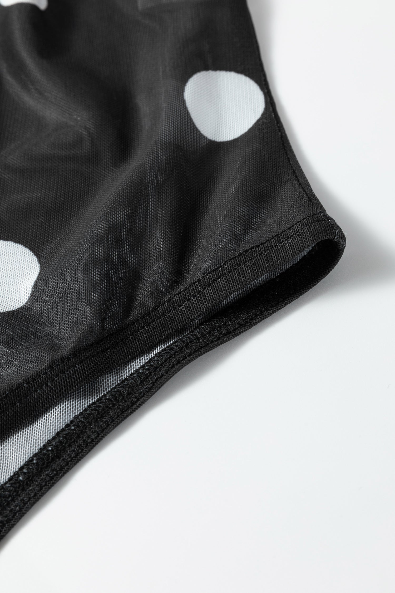 Black Vintage Polka Dot Print Mesh Long Sleeve Bodysuit
