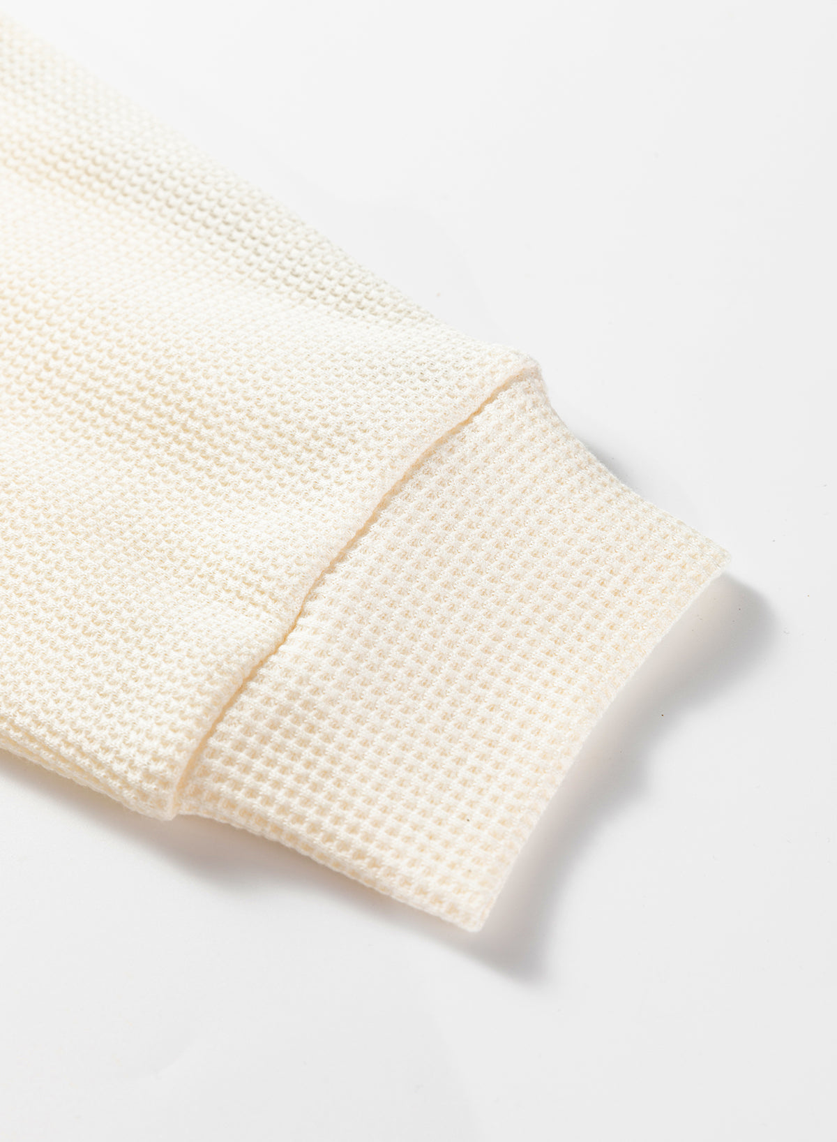 • Waffle knit and contrast color patchwork create bold texture play.