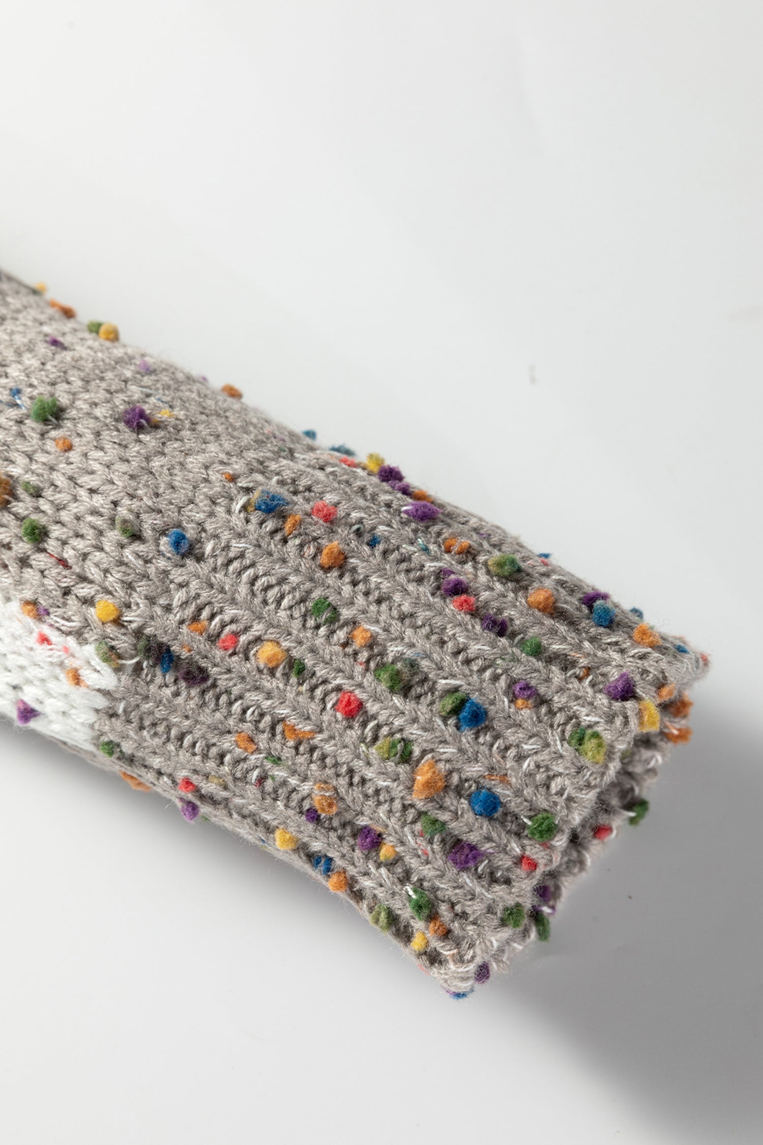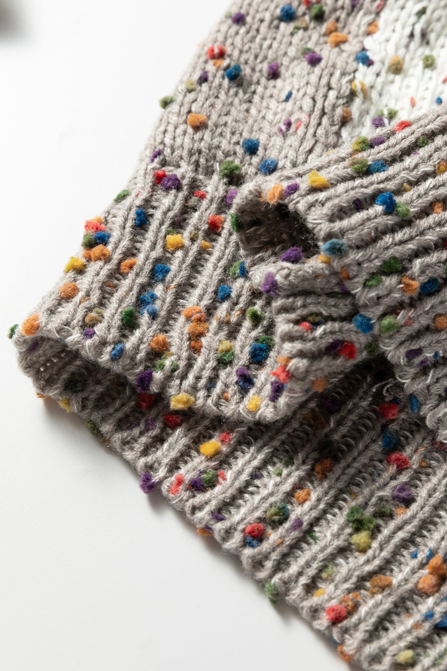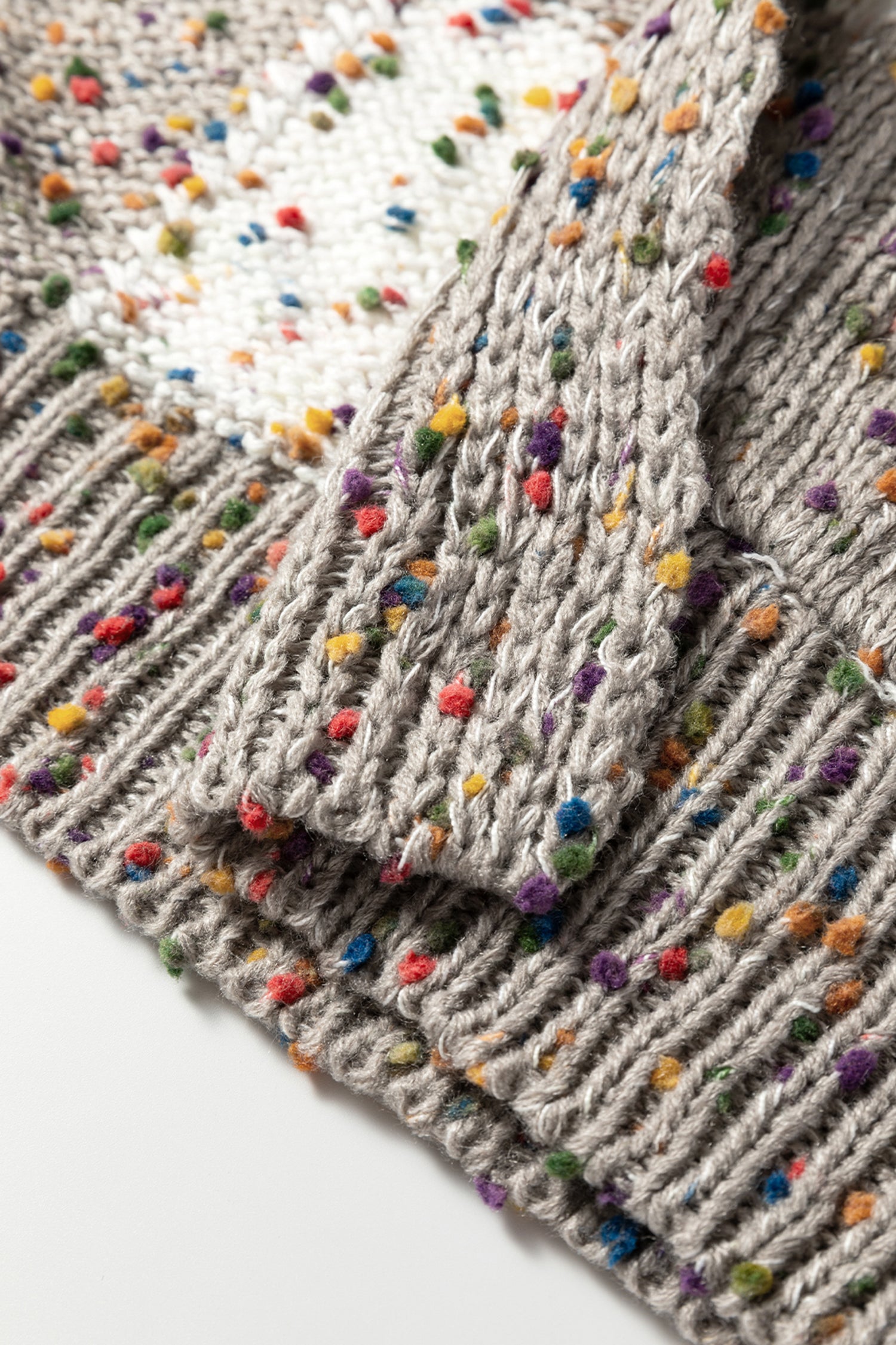 • The confetti dot decor adds a colorful romance to this winter cardigan.