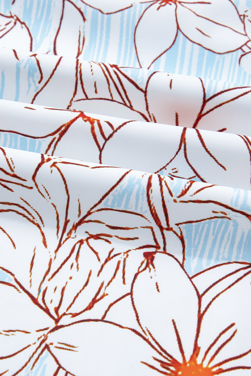 Brown Floral Print Tie Neck 3/4 Sleeve Mini Dress