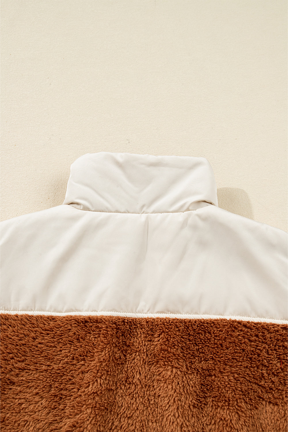 Chestnut Color Block Plush Patchwork Zipper Stand Neck Vest