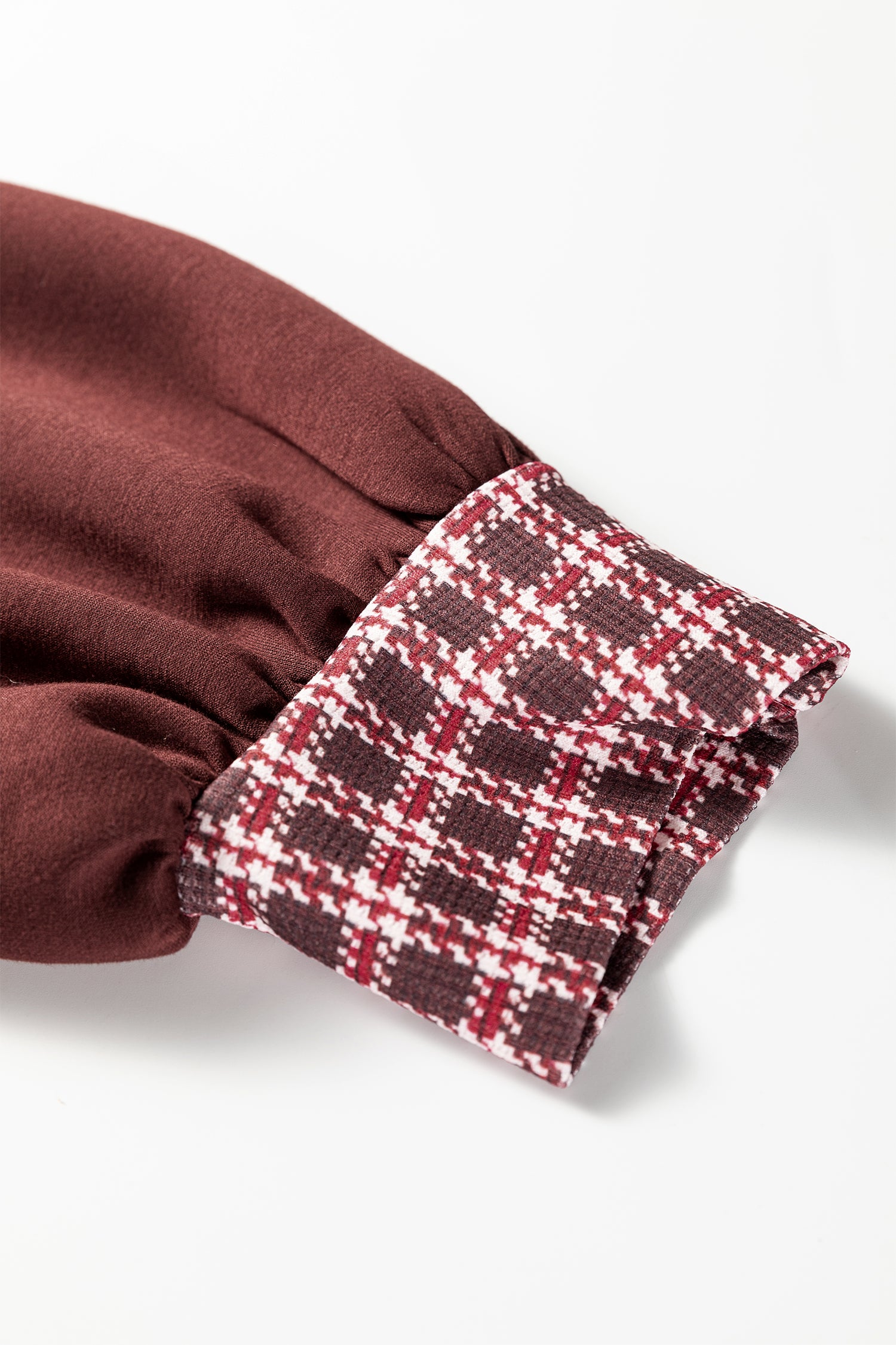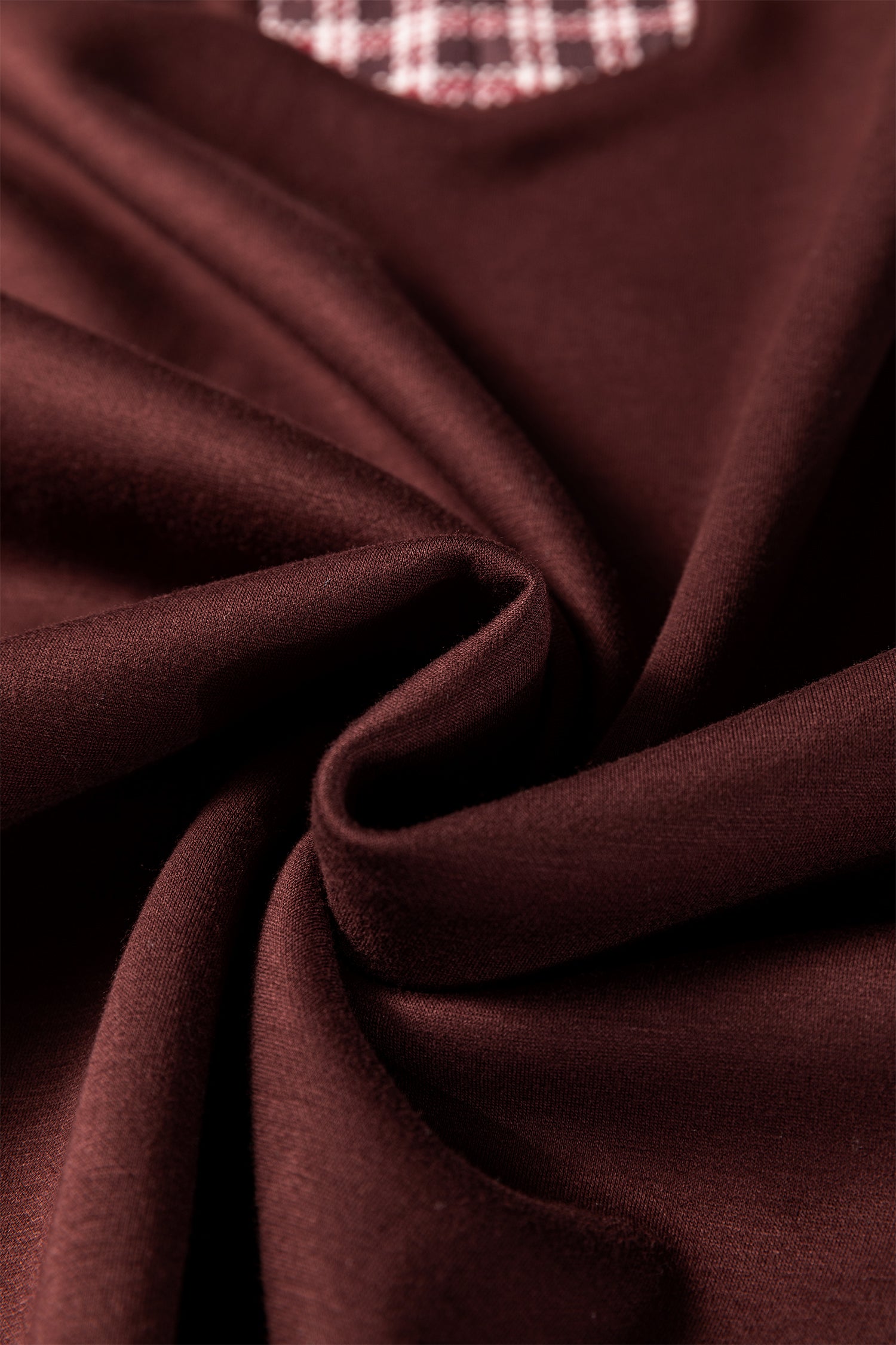 Coffee Contrast Plaid Trim Patchwork Collared Plus Size Shift Mini Dress