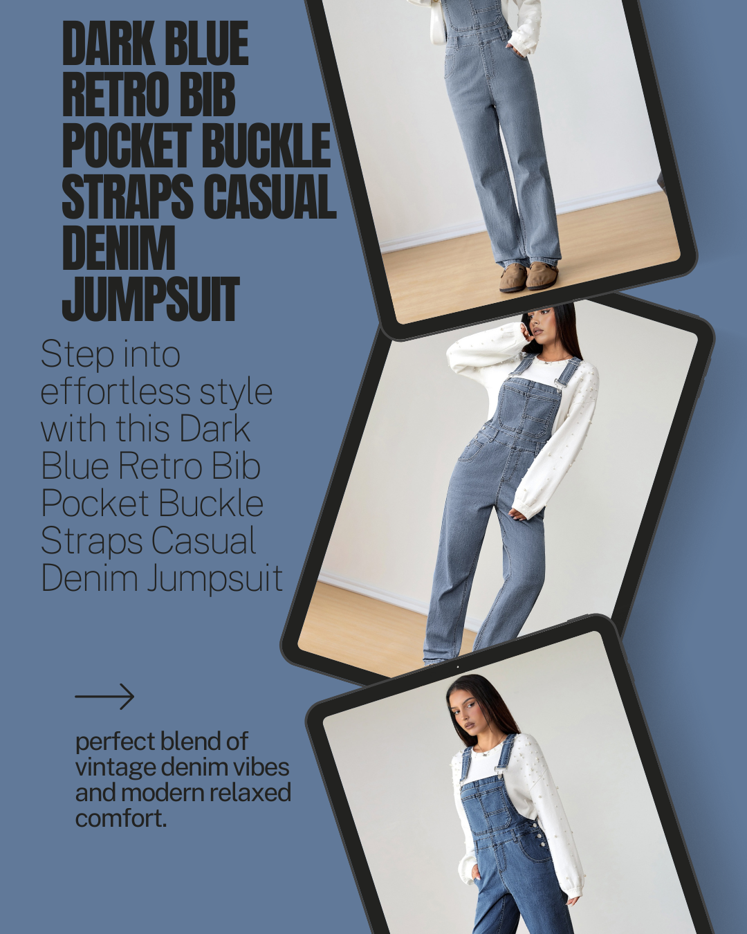 Step back into the golden era of style with our Dark Blue Retro Denim Jumpsuit. Featuring a classic bib front and functional buckle straps, this piece blends 90s nostalgia with a modern silhouette. Crafted from premium, breathable denim, it’s designed to provide a relaxed yet flattering fit that moves with you from sunrise to sunset.