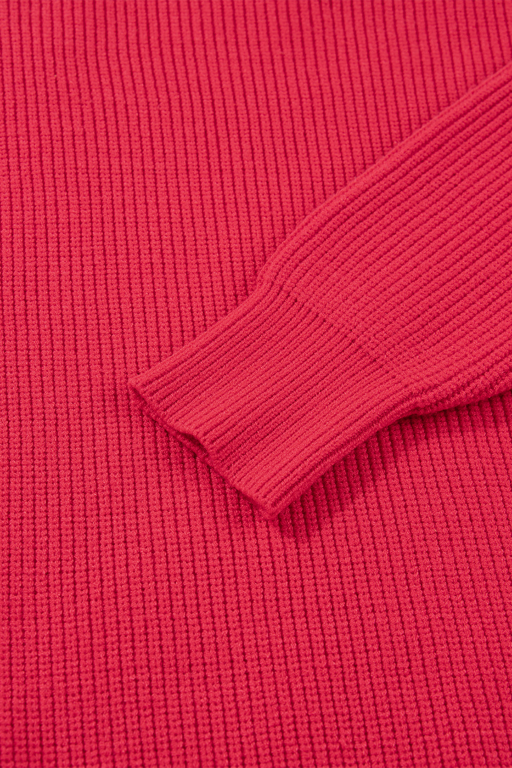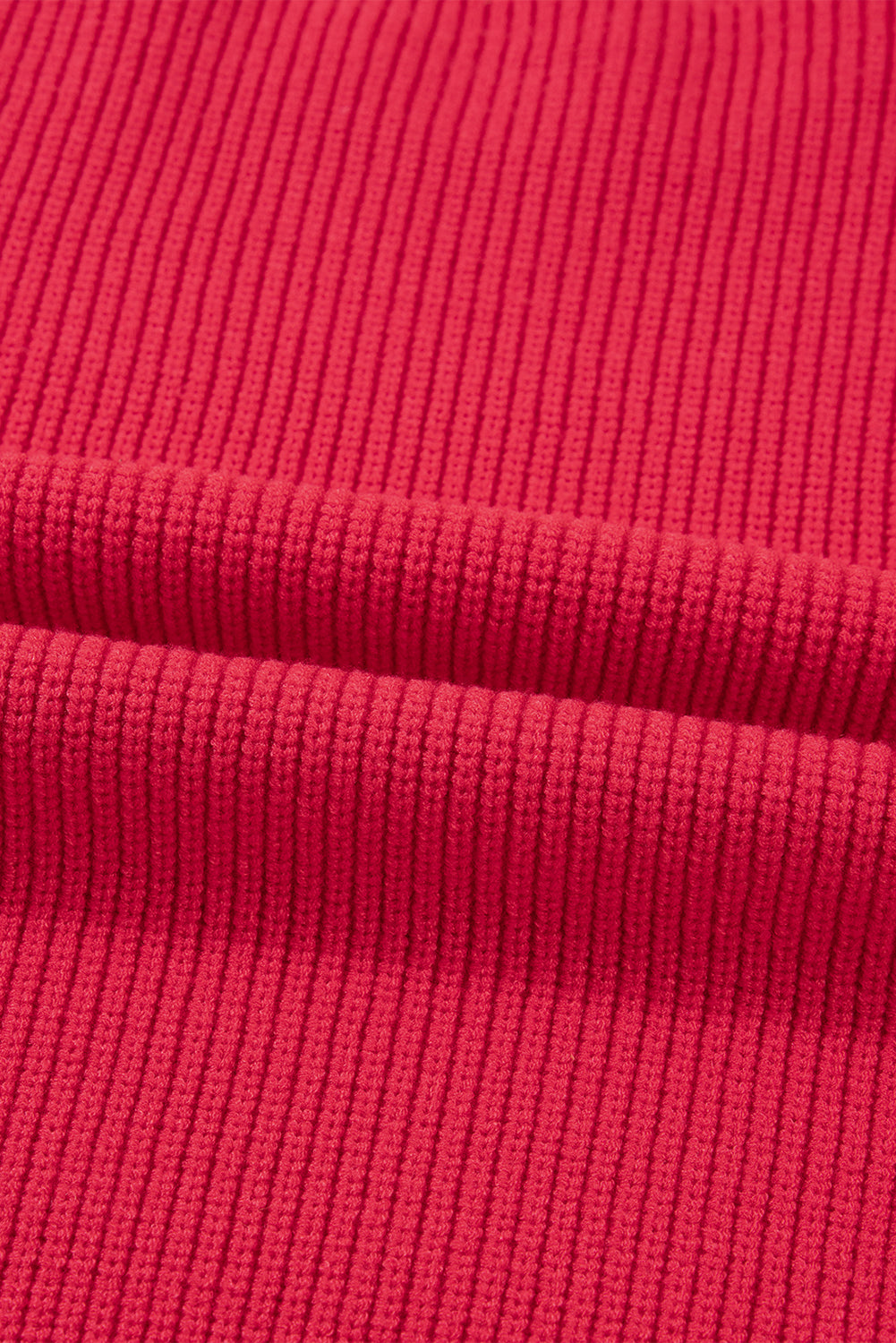 Fiery Red Sequin Bow Accent Drop Shoulder Festive Sweater