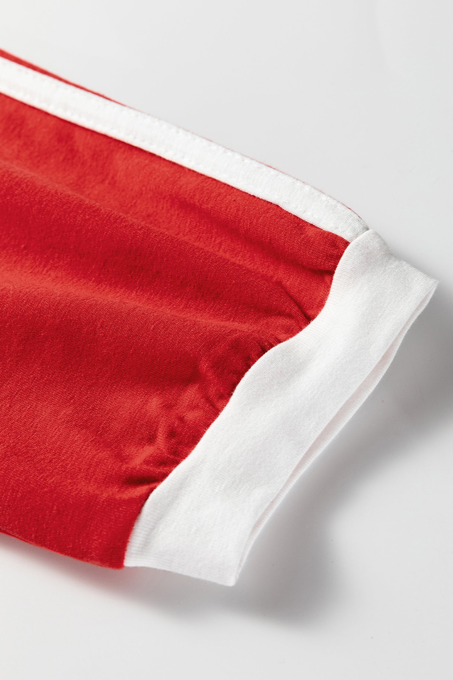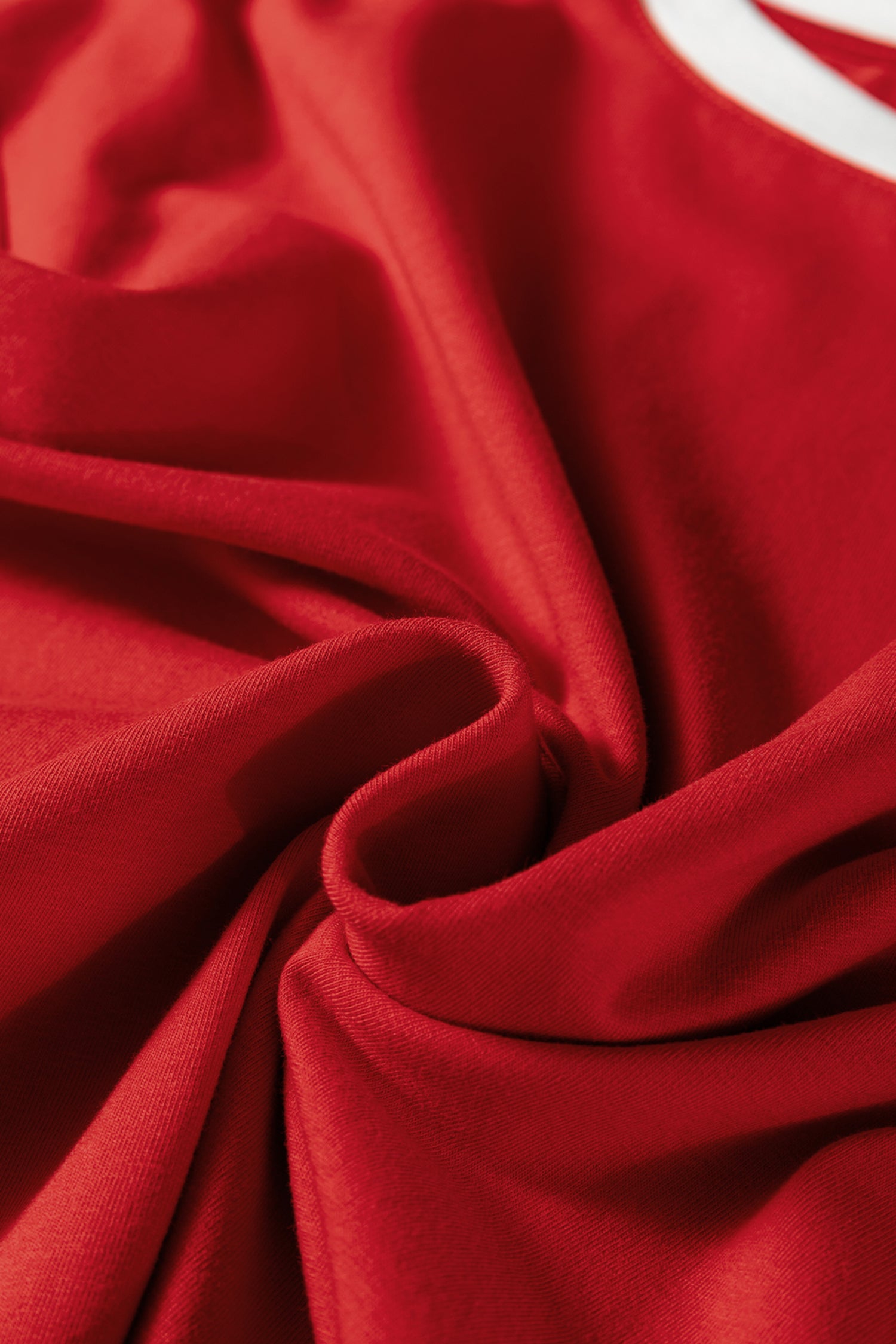 Fiery Red Varsity Striped Accent Contrast Crew Neck Long Sleeve T Shirt