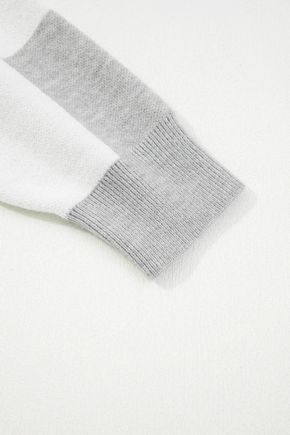 Gray Plus Size Checkered Pattern Button Polo Collar Split Sweater