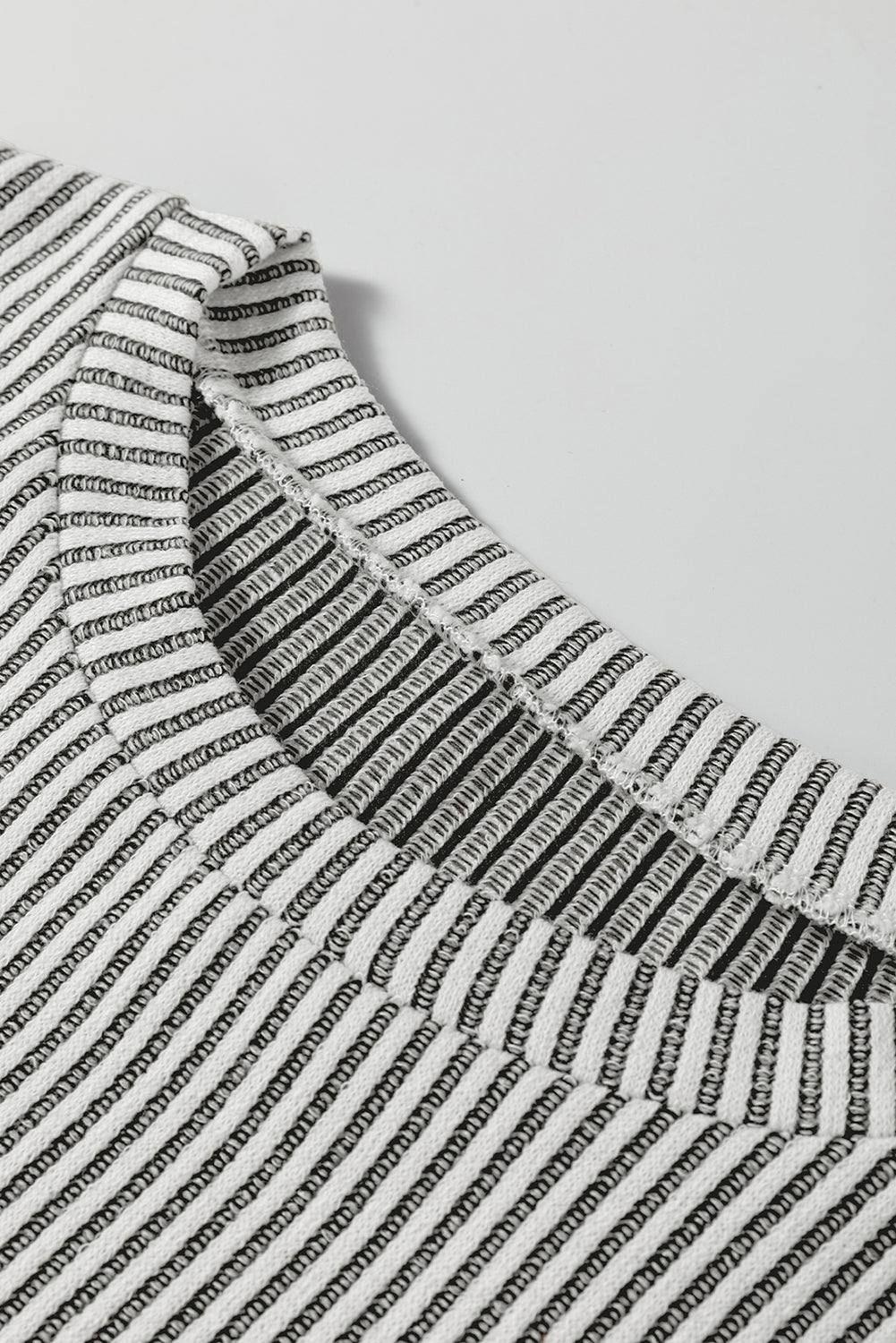 Gray Ribbed Knit Round Neck Long Lantern Sleeve Top