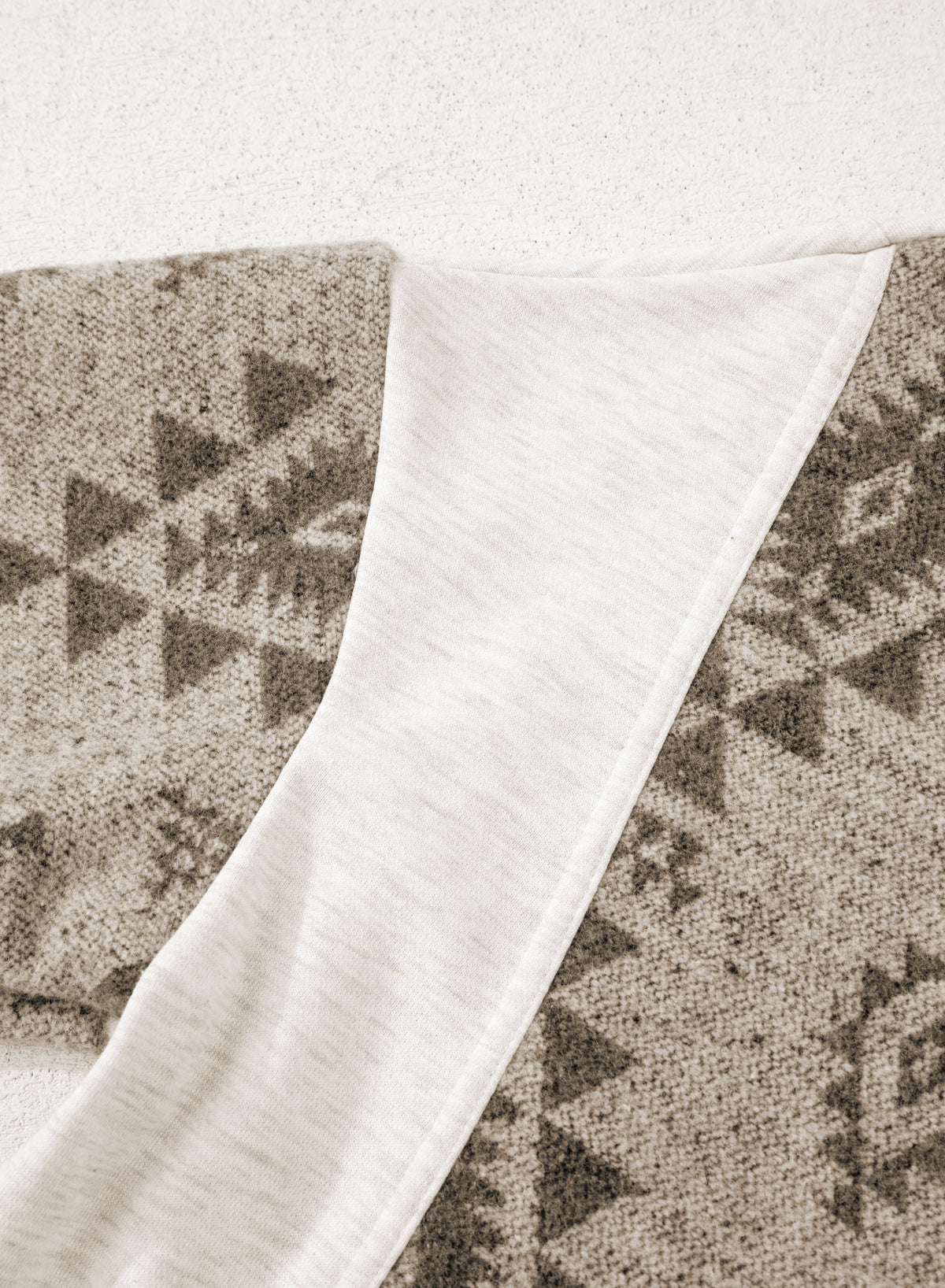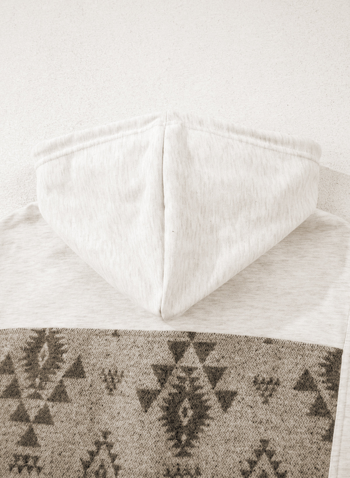Gray Western Aztec Print Color Block Patchwork Drawstring Hooded Shacket