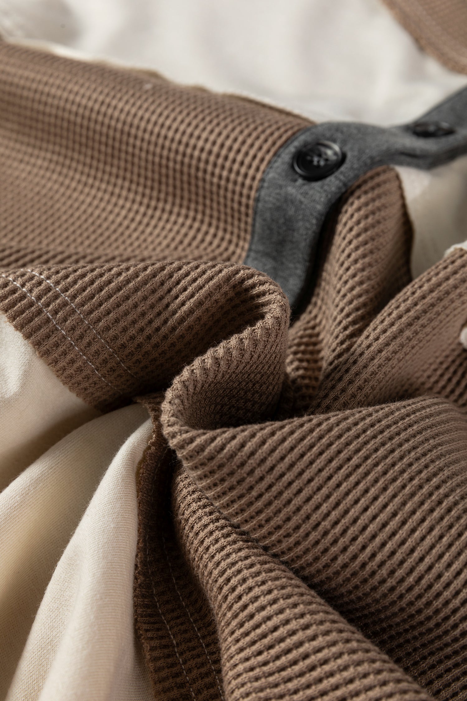Jet Stream Waffle Patchwork Colorblock Half Buttons Casual Plus Size Knit Jumper