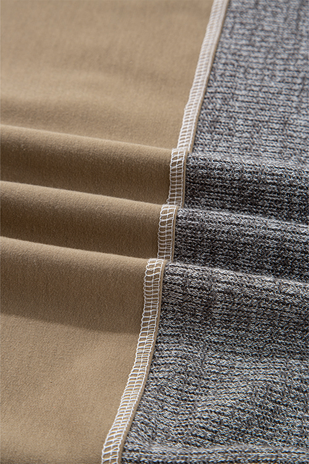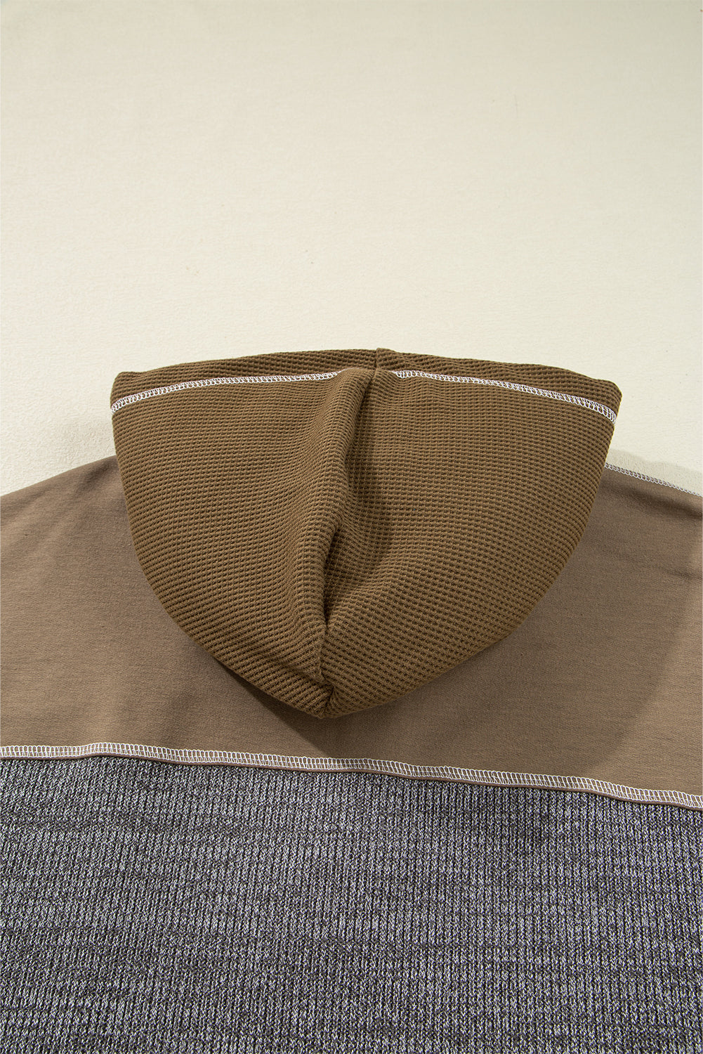 Jungle Green Mixed Texture Patchwork Exposed Seam Half Button Pullover Hooded Sweatshirt