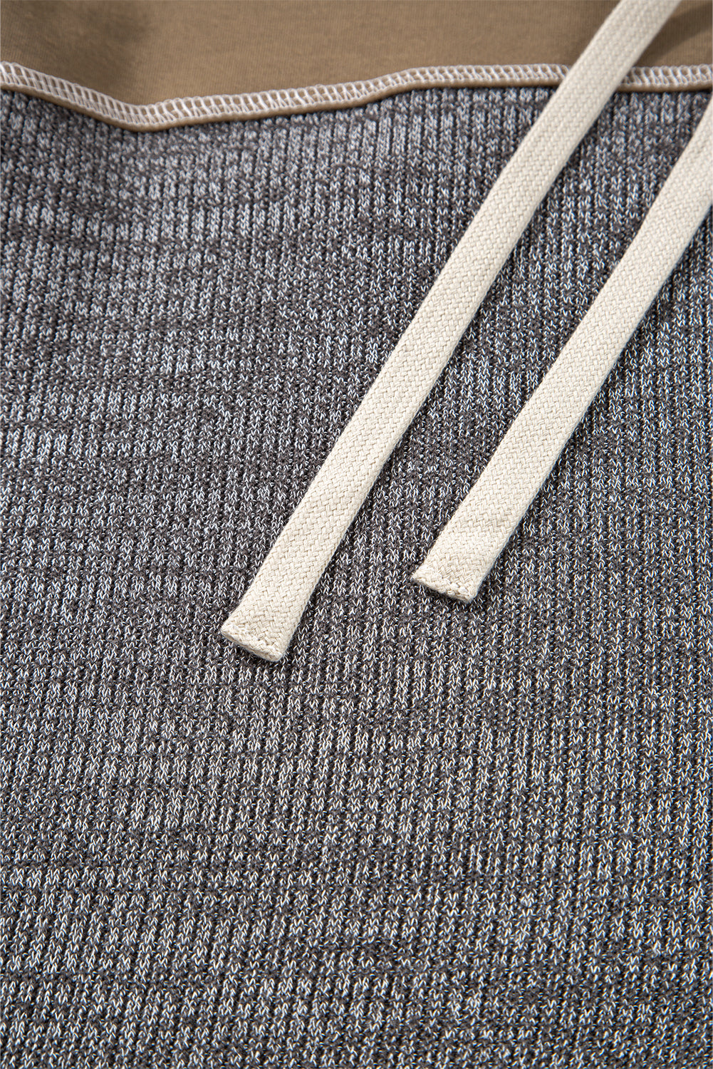 • Mixed texture patchwork adds a trendy twist to this casual hooded pullover.