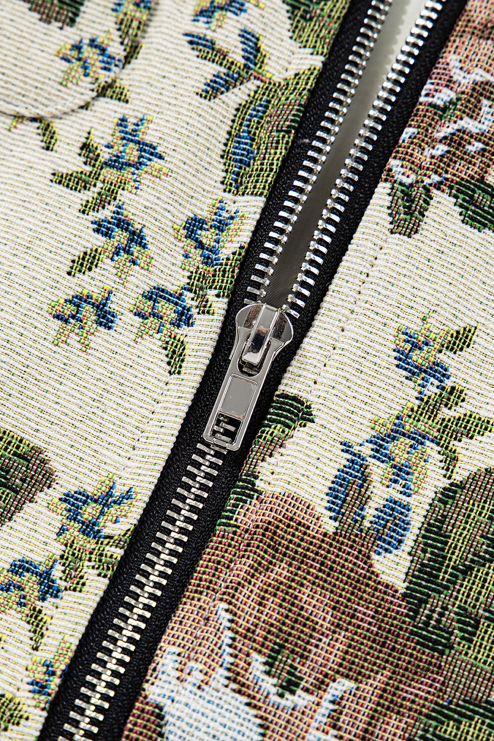 Khaki Floral Print Zip Up Contrast Collared Jacket