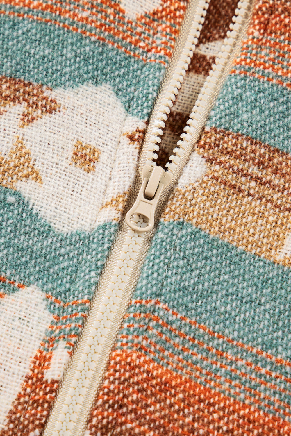 Khaki Quarter Zip Elastic Cuffs Aztec Sweatshirt