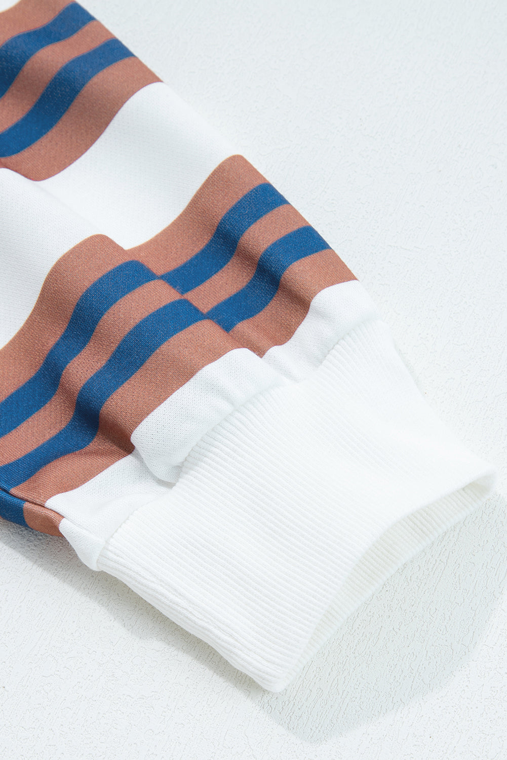 Khaki Stripe Crew Neck Drop Shoulder Pullover Sweatshirt