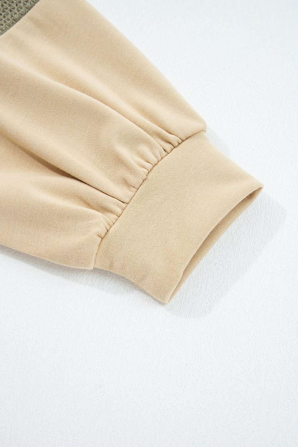 Laurel Green Exposed Seam Contrast Texture Patchwork Plus Size Drop Shoulder Pullover