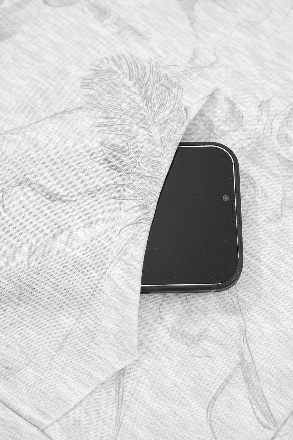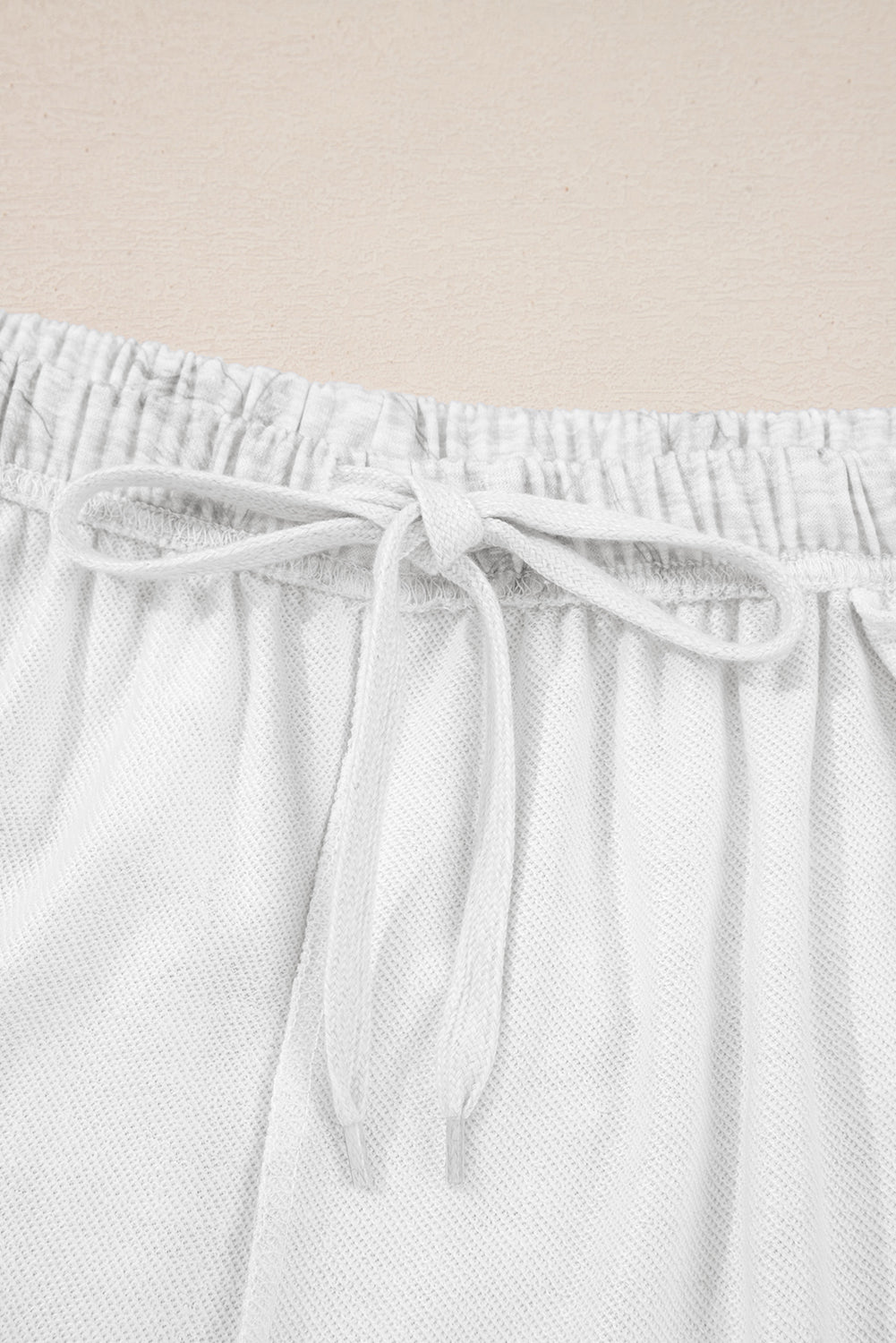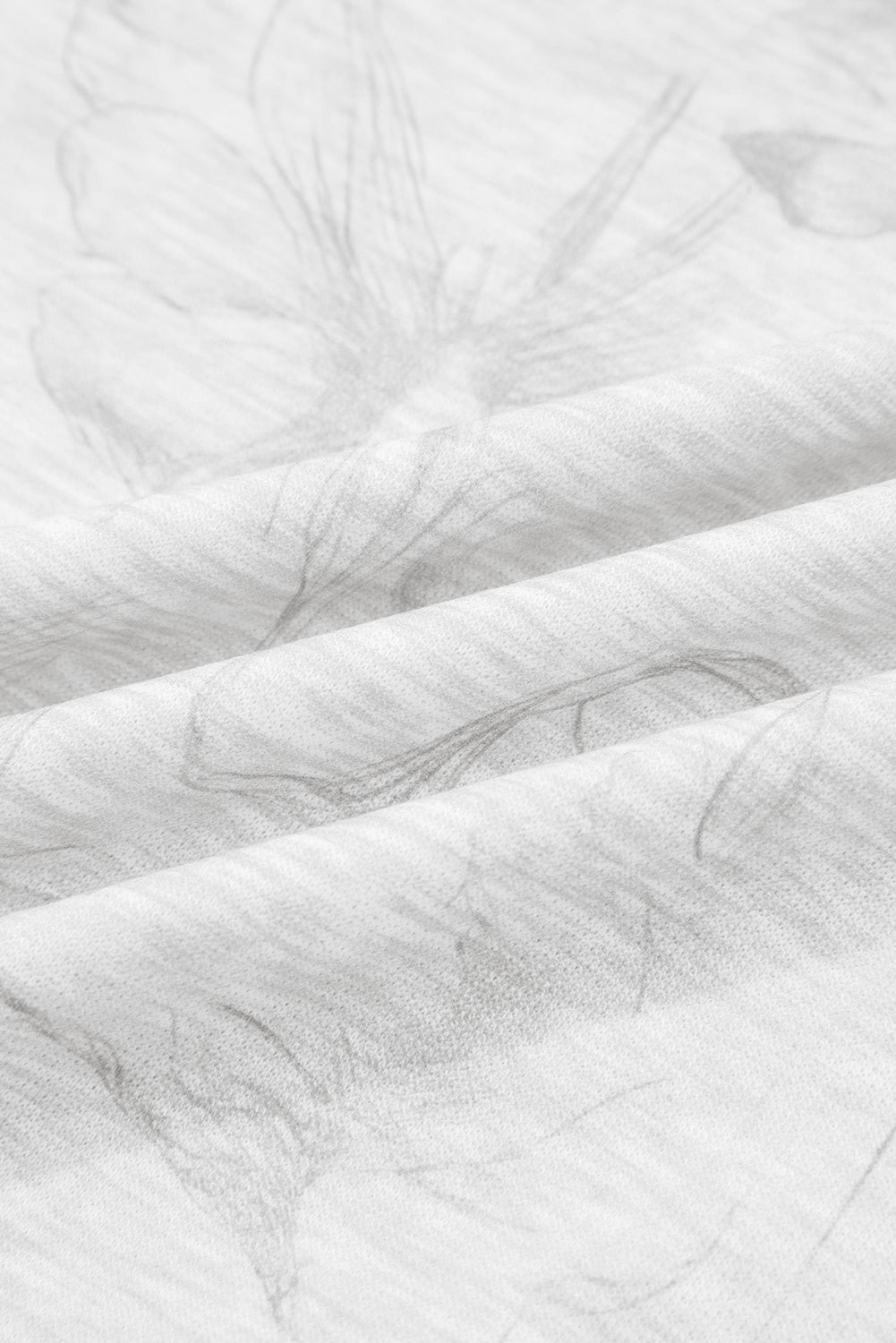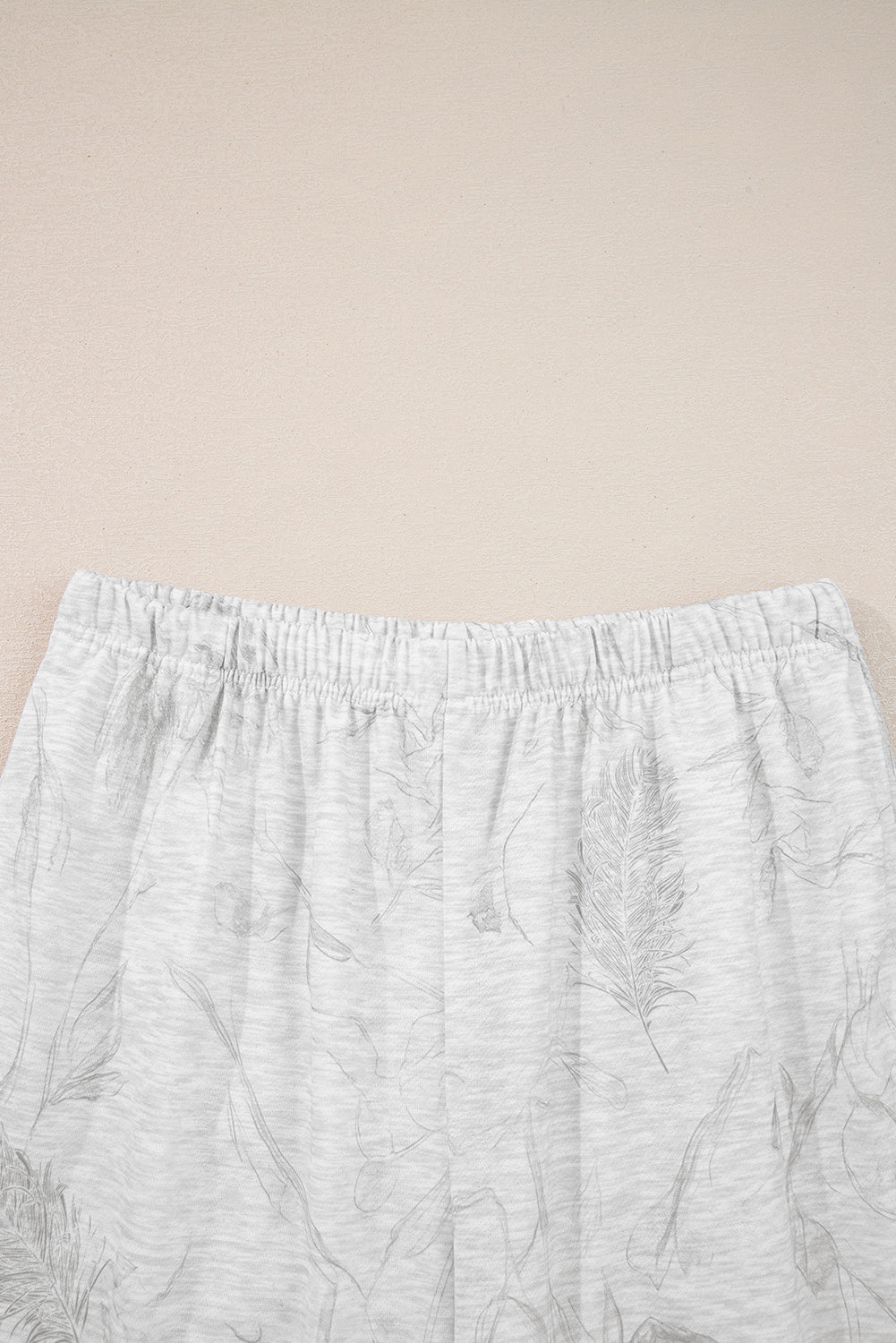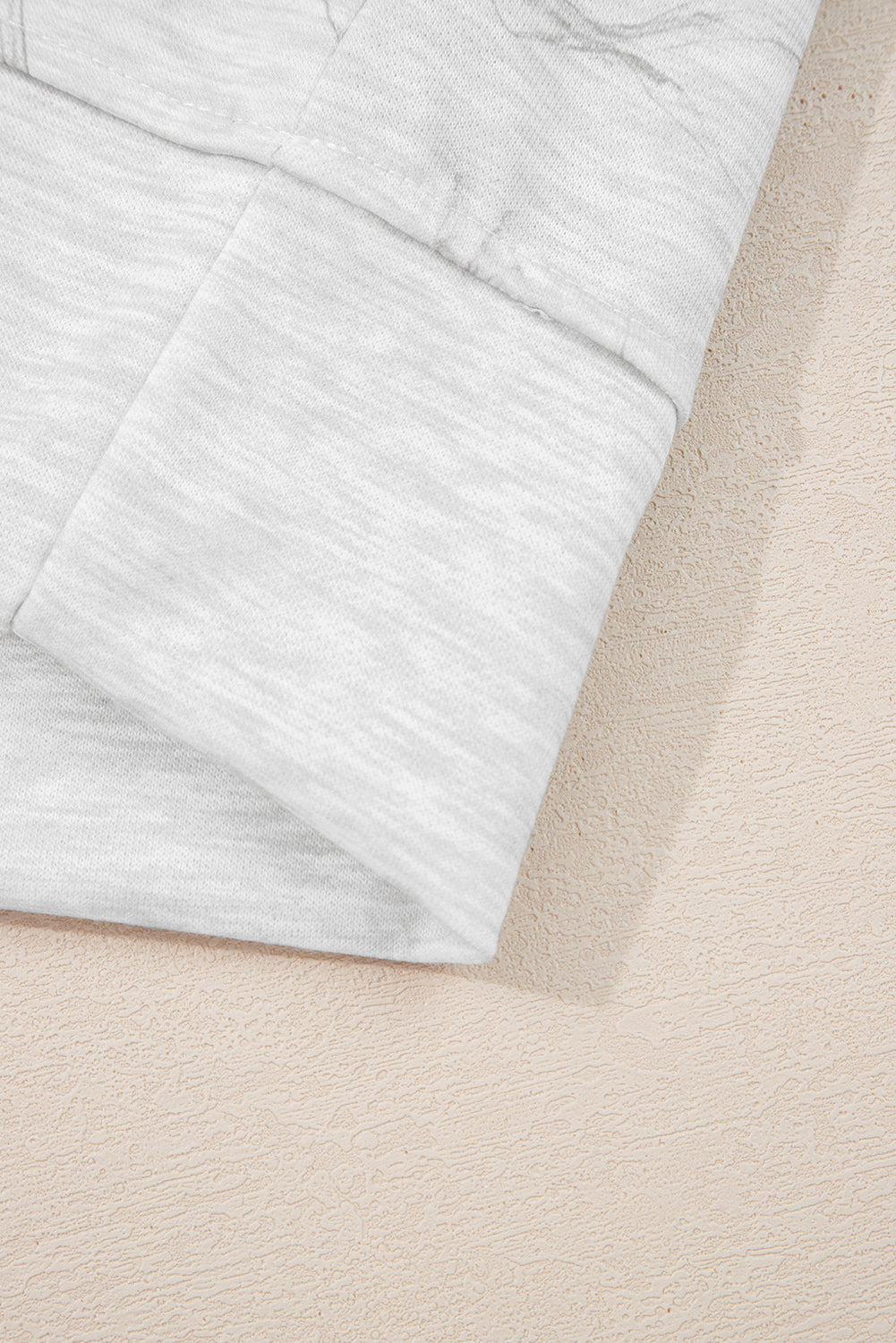 Light Grey Abstract Print Loose Drop Sleeve Hoodie Elastic Waistband 2pcs Pant Set