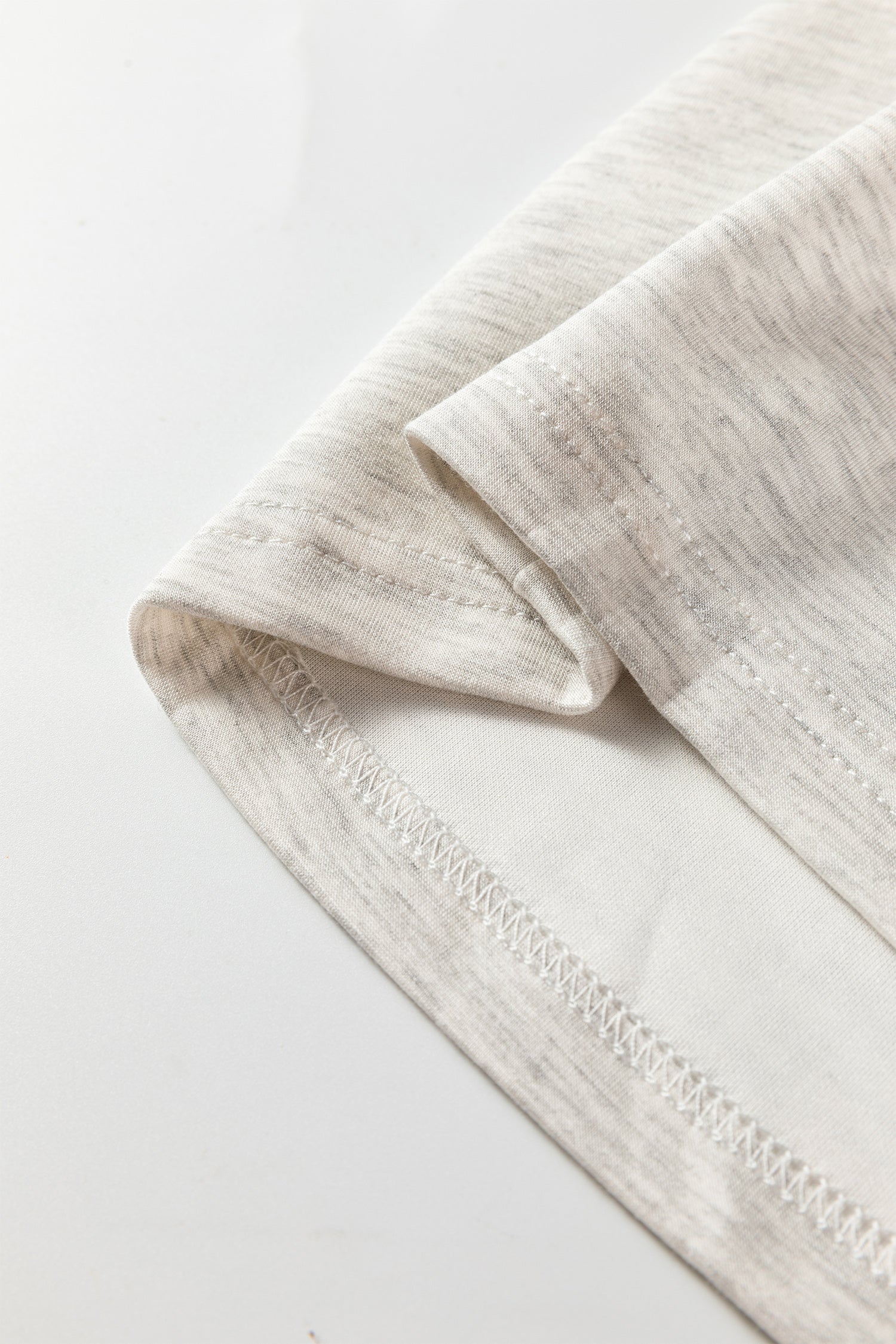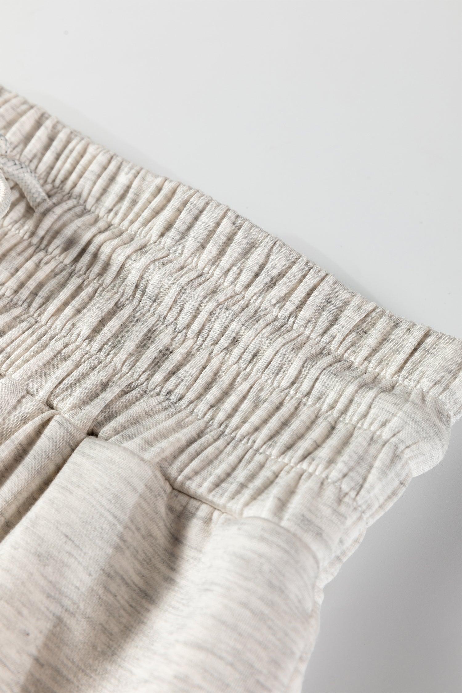 Light Grey Long Sleeve High Neck Slim Top Smocked Waist Central Seam Pants Set