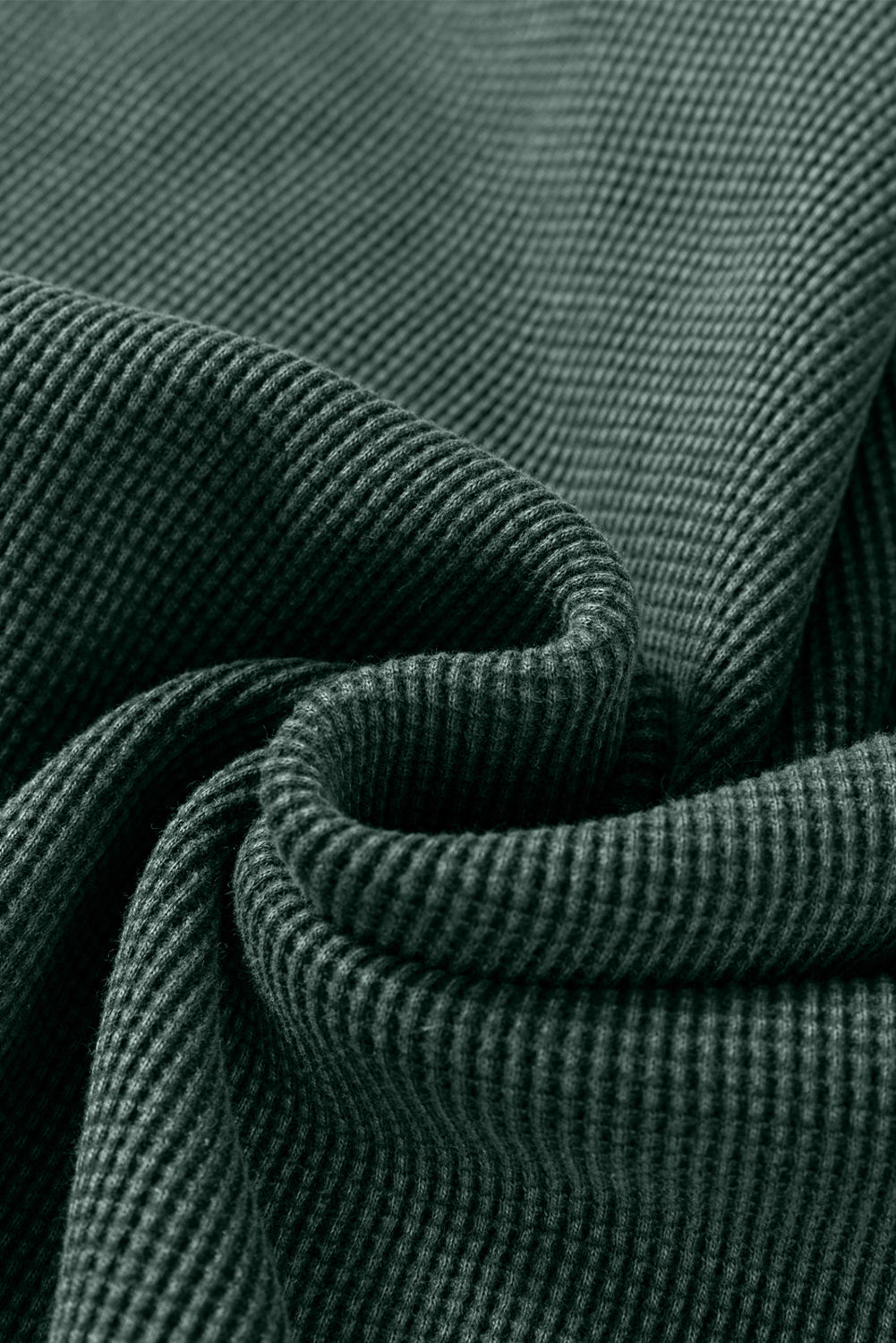 Mist Green Waffle Knit Patchwork Long Sleeve Loose Top