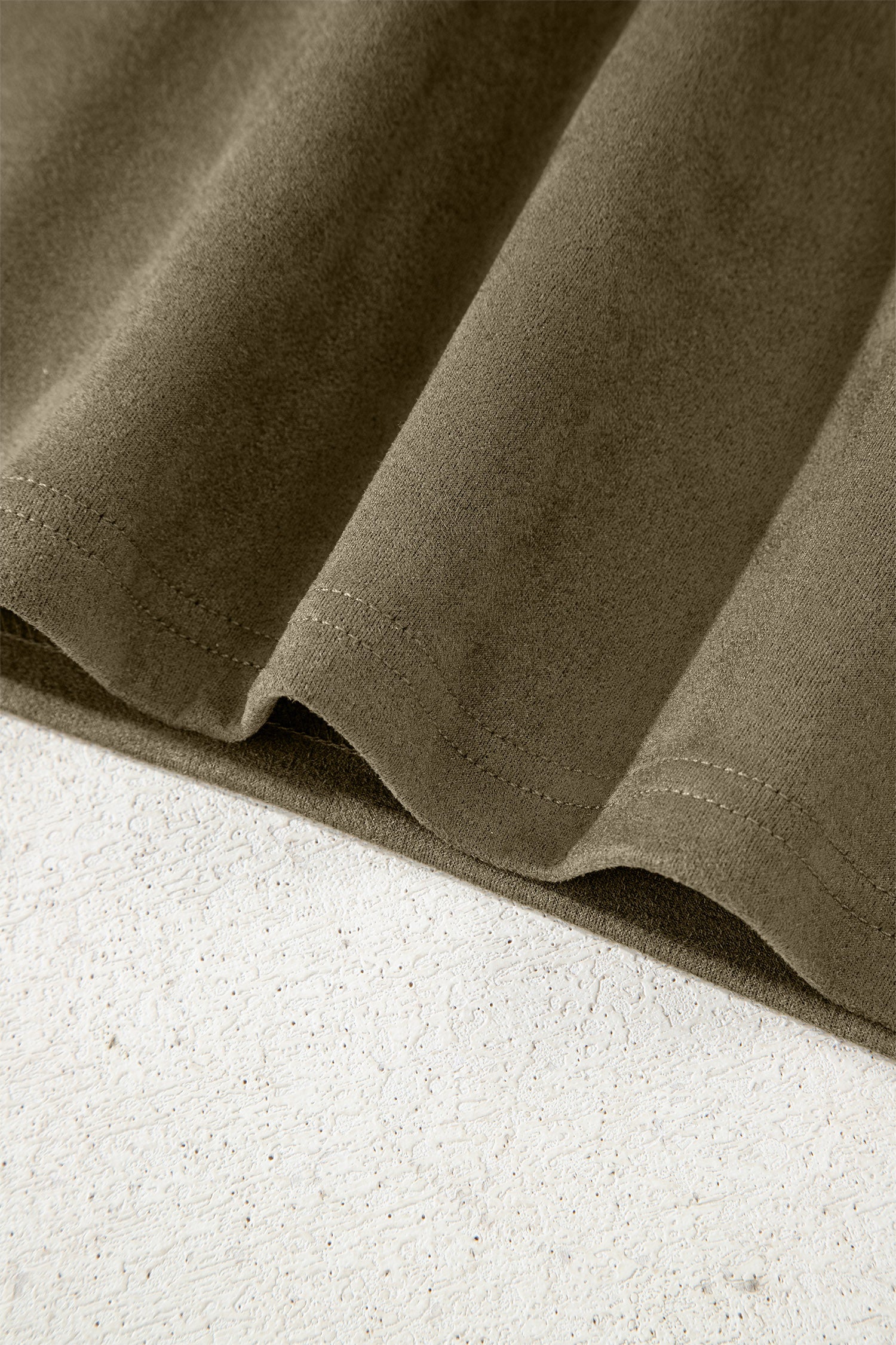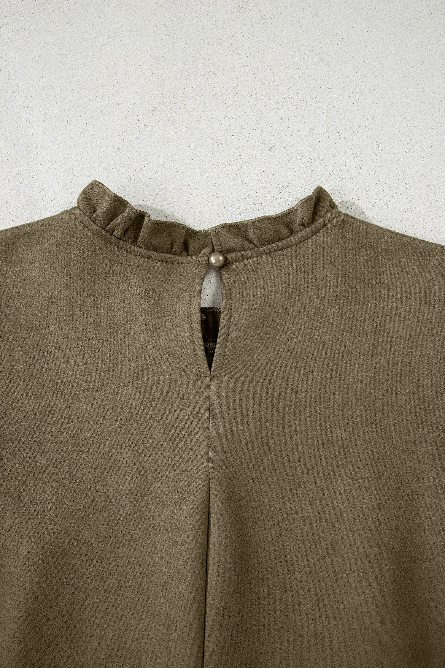 Moss Green Frilled Round Neck Short Puff Sleeve Shift Mini Dress