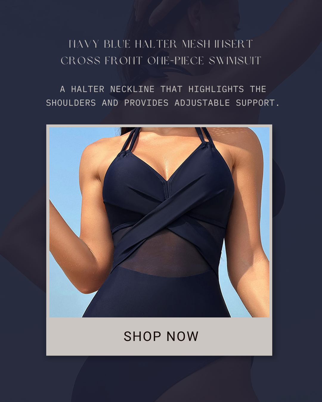 Step into summer with a swimsuit that highlights your curves, boosts your confidence, and delivers timeless elegance. This Navy Blue Halter Mesh Insert Cross Front One-Piece Swimsuit blends sleek design, supportive fit, and modern mesh details for a look that’s both classy and flattering. Whether by the beach or the pool, its cross-front silhouette enhances your shape while keeping you comfortable all day.