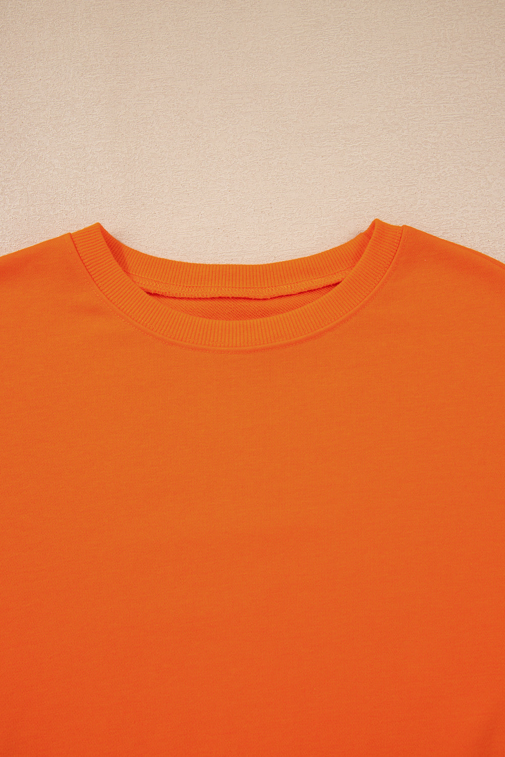 Orange Varsity Stripe Detail Drop Shoulder Pullover Mini Skirt Set
