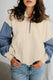 Parchment Checkered Patchwork Kangaroo Pocket Half Zipper Hoodie