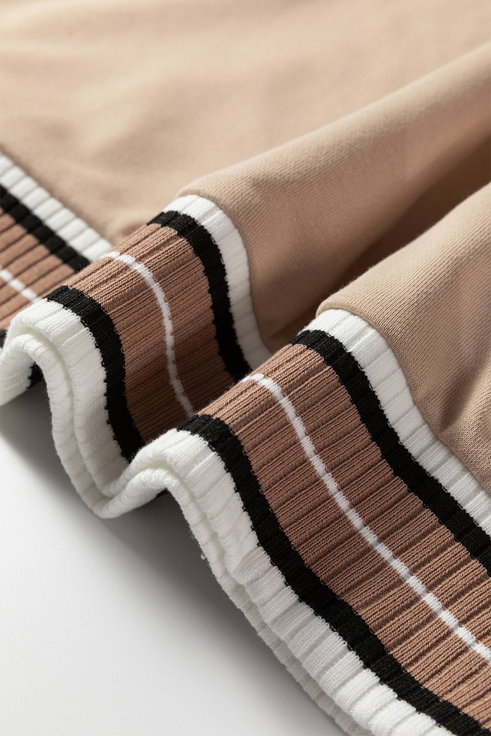Parchment Varsity Contrast Striped Trim V Neck Sweatshirt