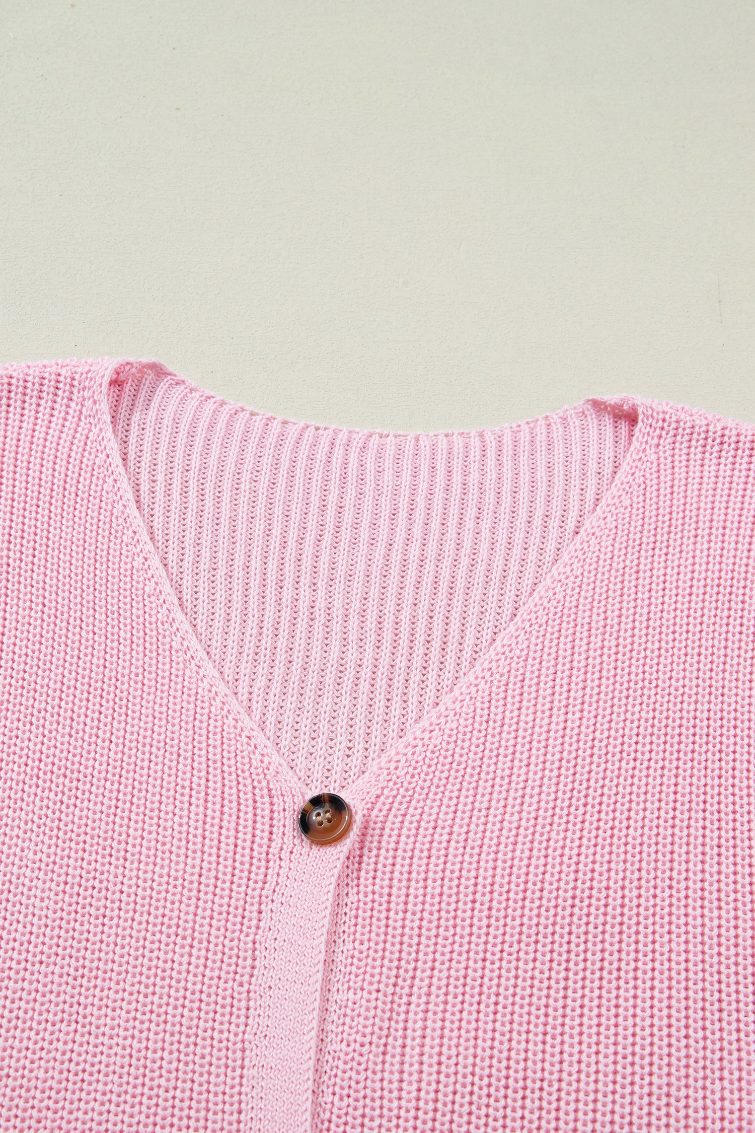 Pink Solid Color Knit V Neck Button Front Sweater Vest