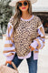 • Purple Stripe Color Block Patchwork Leopard Casual Sweatshirt with Slits