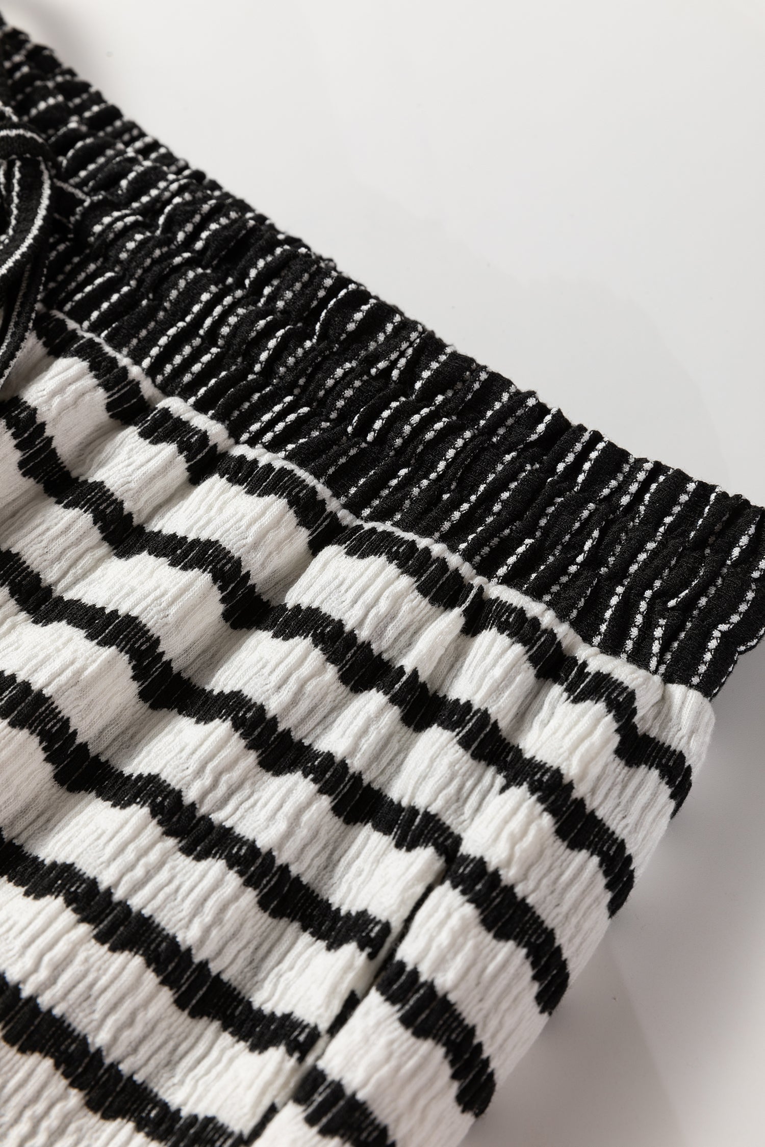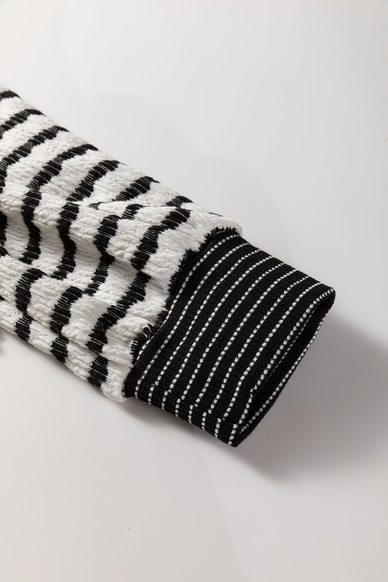 Sky Blue Stripe Collared Pullover Top and Drawstring Pant Set