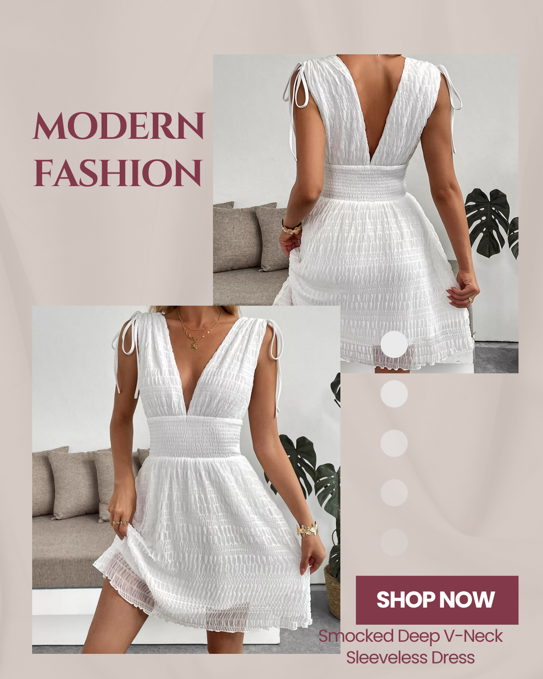 Turn heads with a dress that celebrates your curves. The sleeveless design and deep V-neck offer a bold yet refined look, while the flexible smocking adapts perfectly to your body for a customized fit. Whether you’re pairing it with strappy sandals for a tropical getaway or dressing it up with statement jewelry for a cocktail party, this dress is the versatile powerhouse your wardrobe has been waiting for.