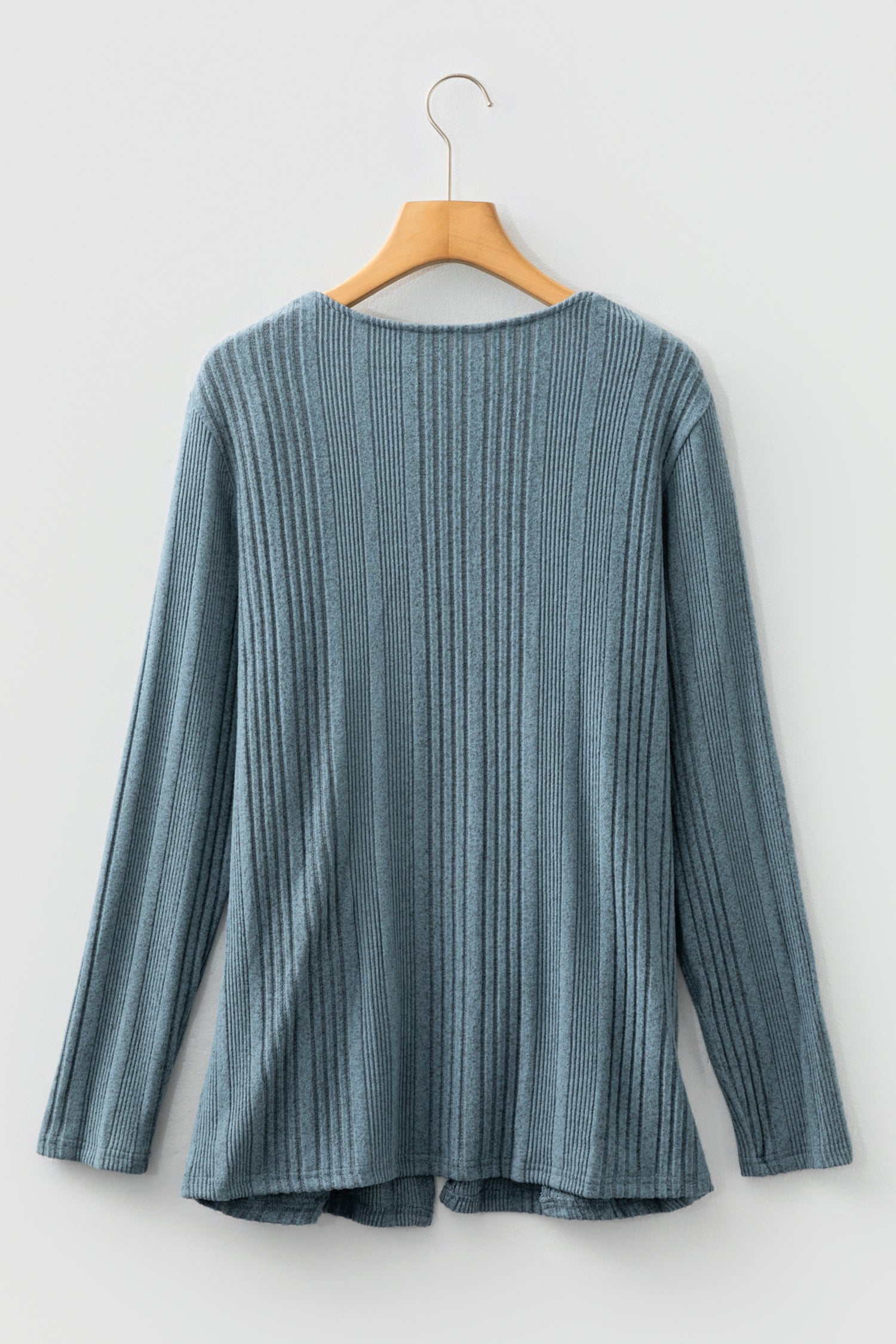 Stone Blue Ribbed Open Front Knitted Top with Pockets