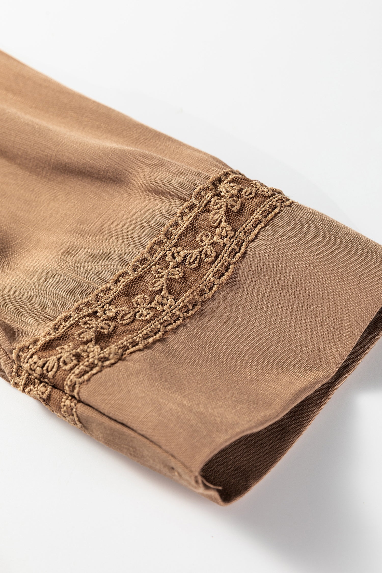 Lace inset accents along the bodice and sleeves.
