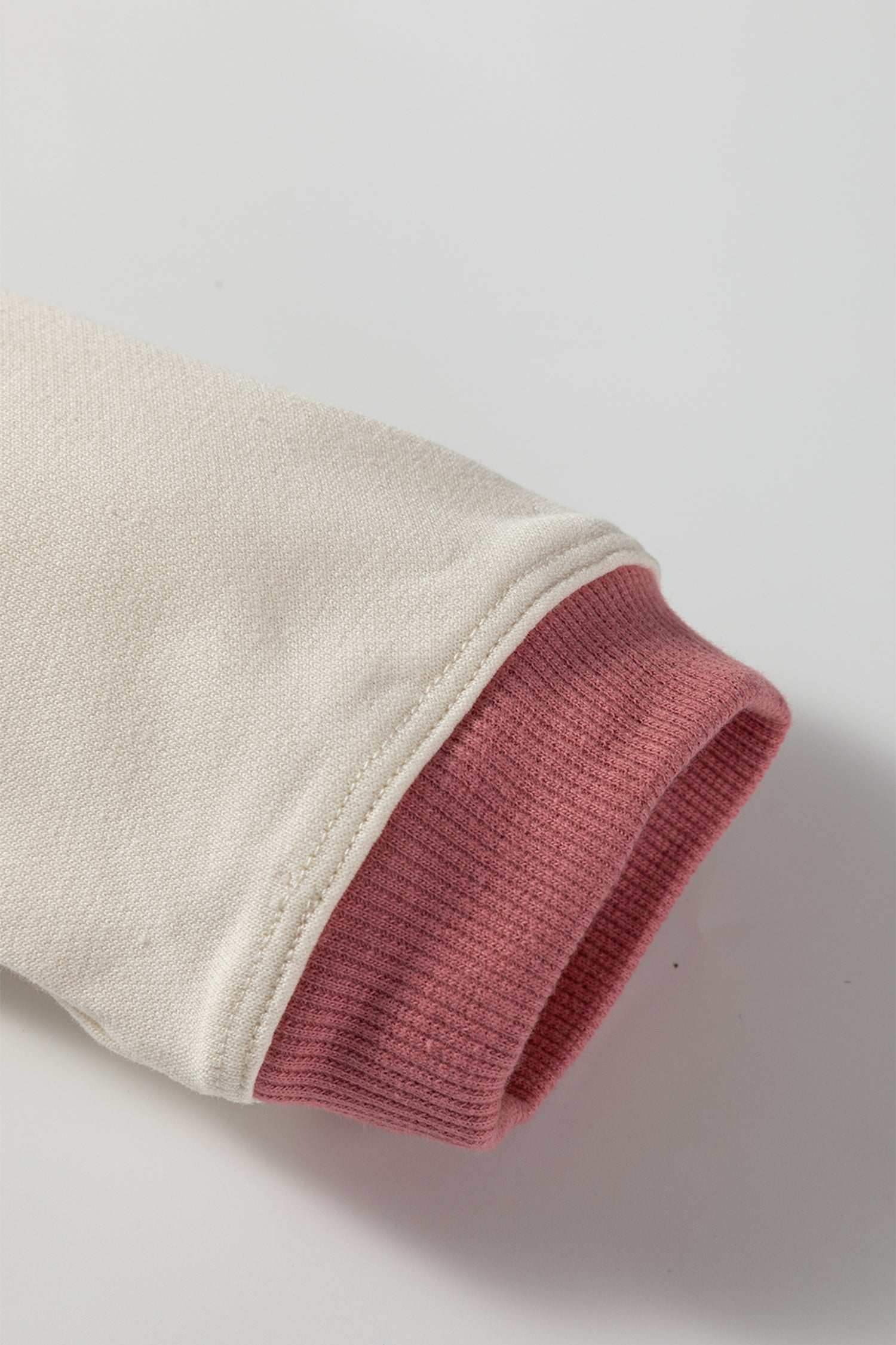 White Contrast Trim Crochet Knit Patchwork Exposed Seam Hoodie