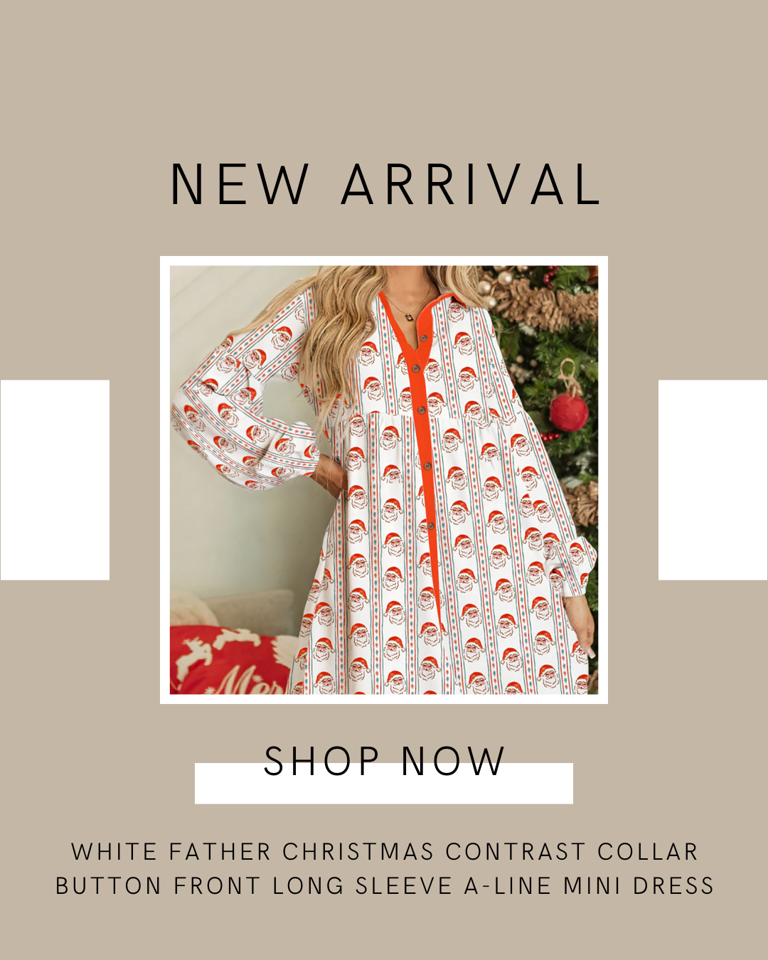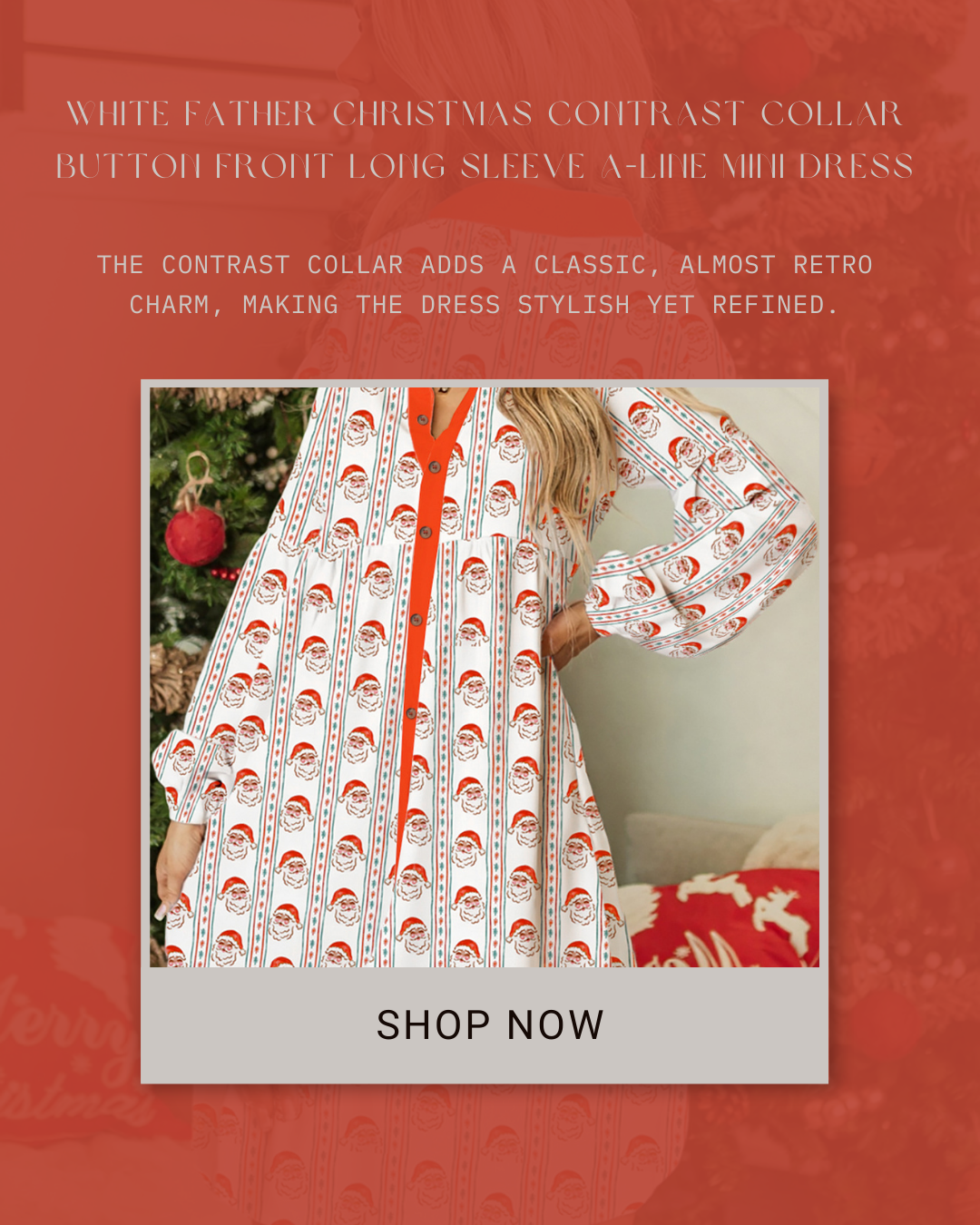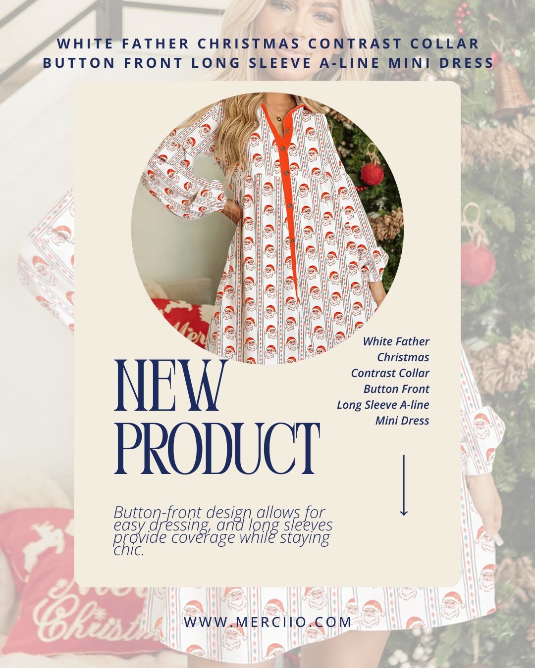 Make every celebration unforgettable with this White Father Christmas Contrast Collar Mini Dress. Designed with a flattering A-line silhouette, it brings a touch of festive charm while staying effortlessly chic. The button-front detail and classic contrast collar create a look that’s both playful and polished, making it perfect for parties, dinners, or holiday photos.