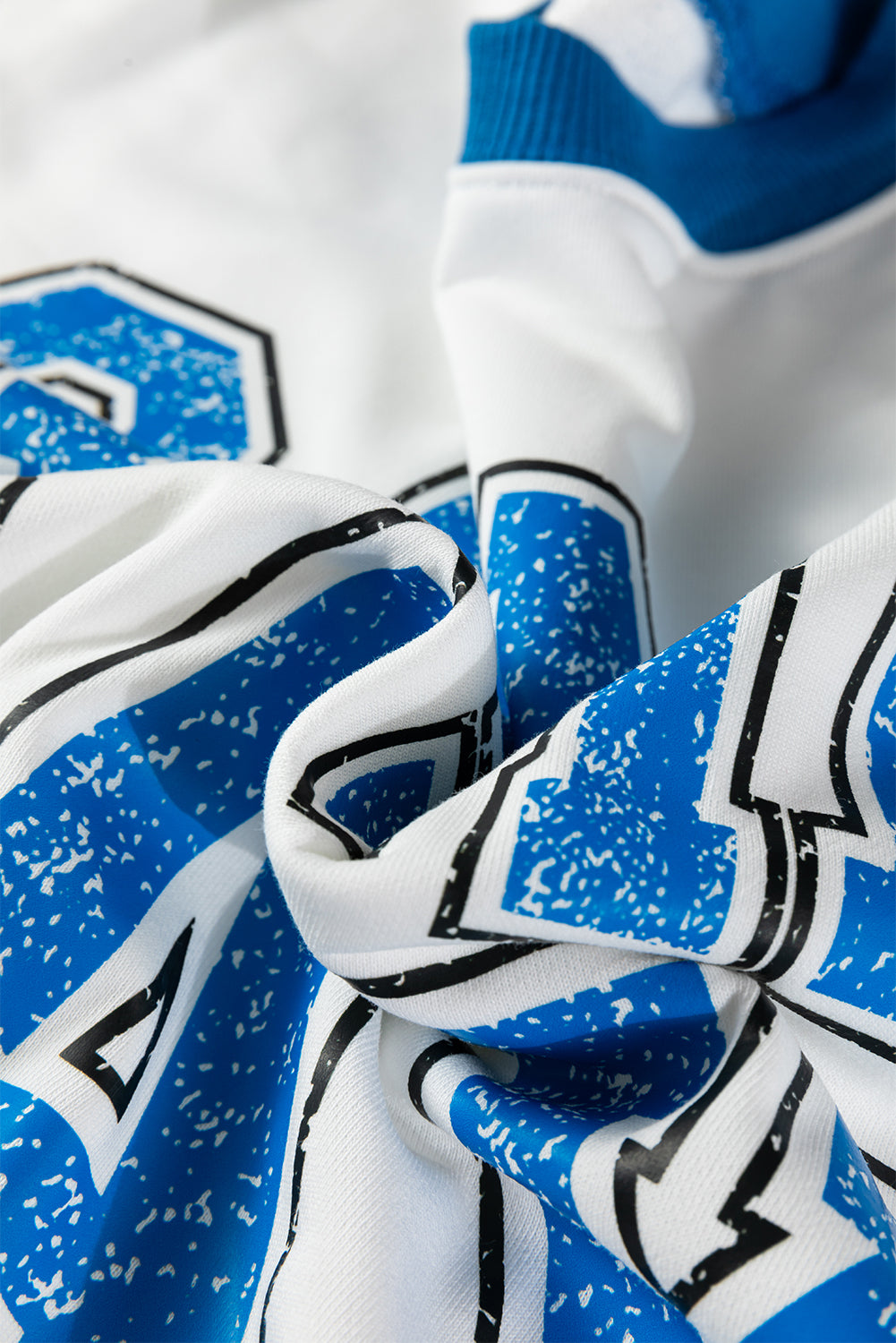 White GAME DAY Letter Graphic Varsity Striped Detail Baggy Sweatshirt