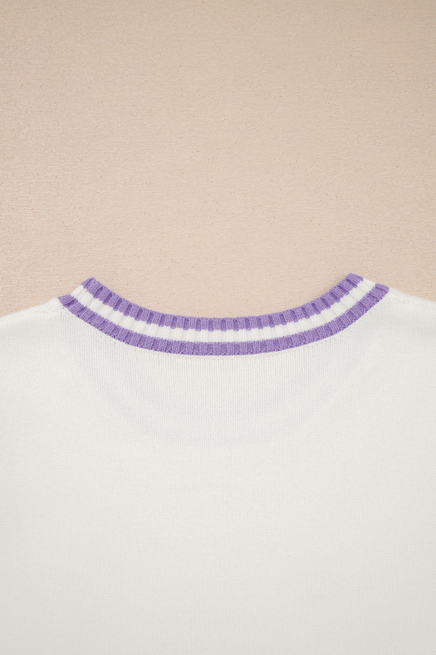 White Mardi Gras Tinsel Letter Graphic Short Sleeve Sweater