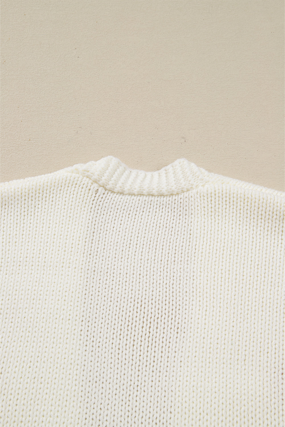 • This womens white cardigan with patched pumpkin pattern is perfect for fall.