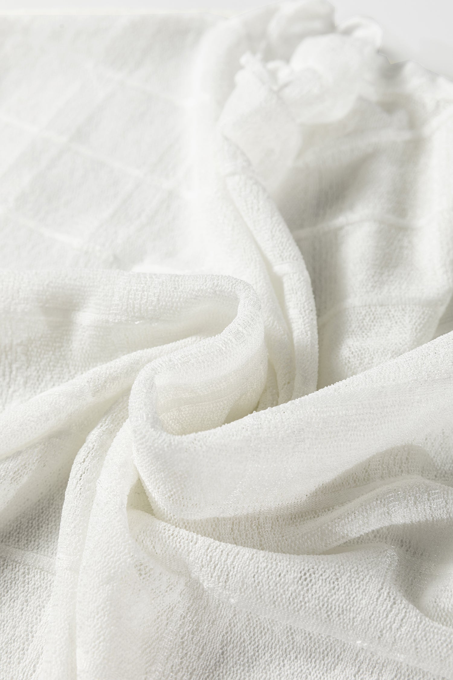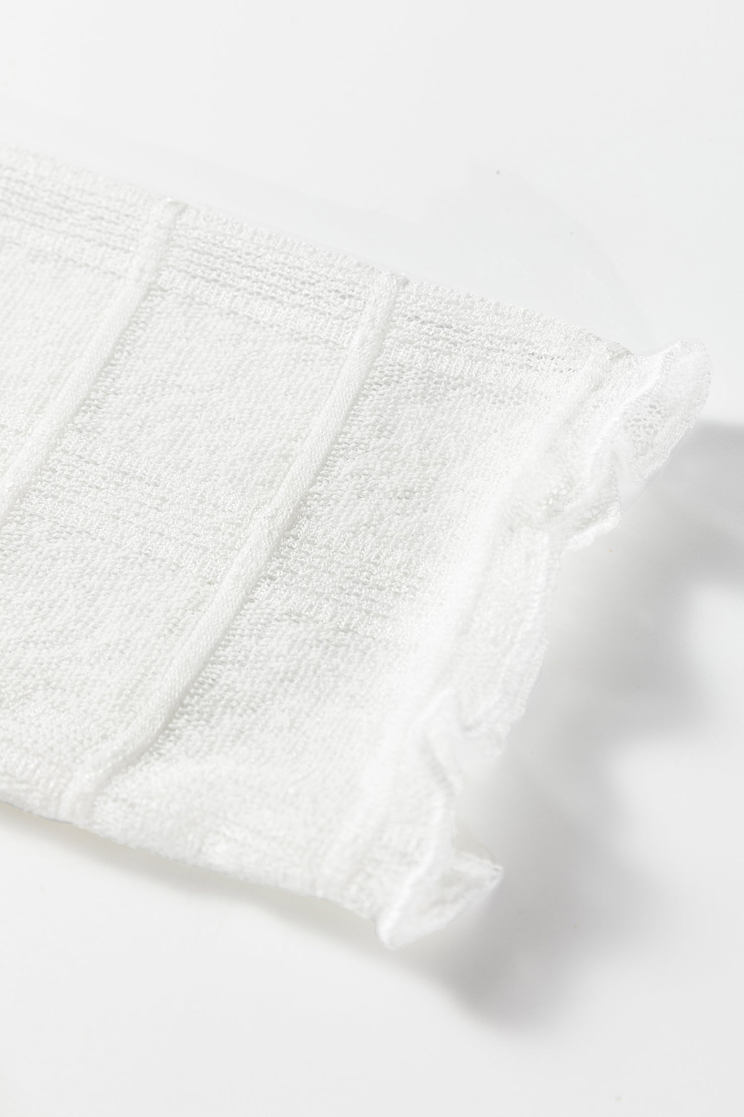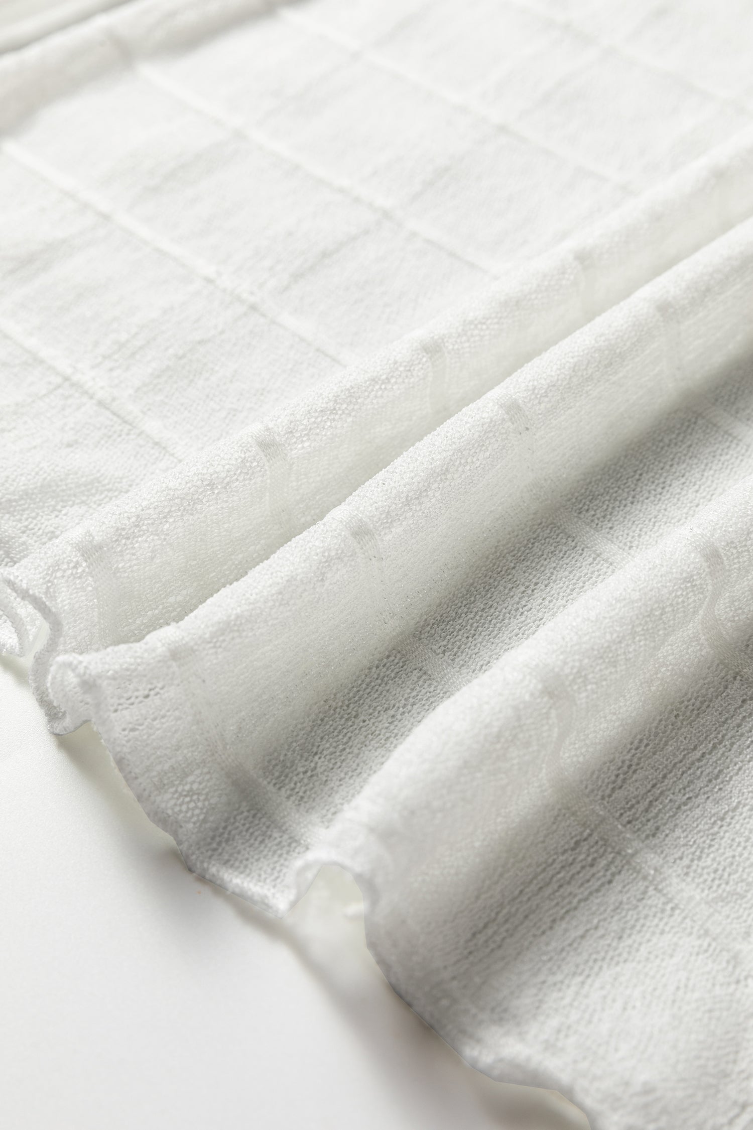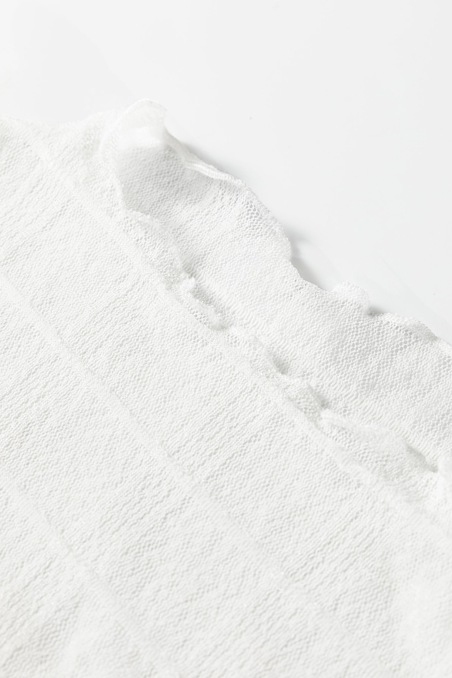 White Sheer Plaid Mesh Lettuce Trim Slim Fit Long Sleeve Top
