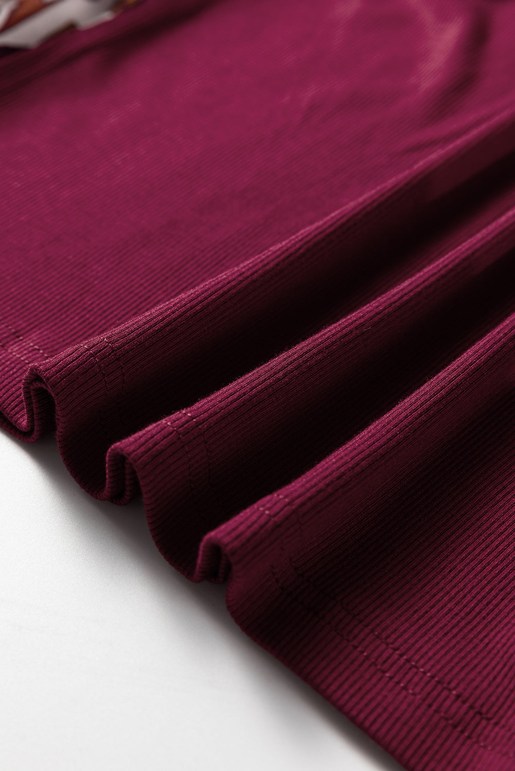 Wild Ginger Contrast Floral Sleeve Solid Ribbed Body Patchwork Long Sleeve Top