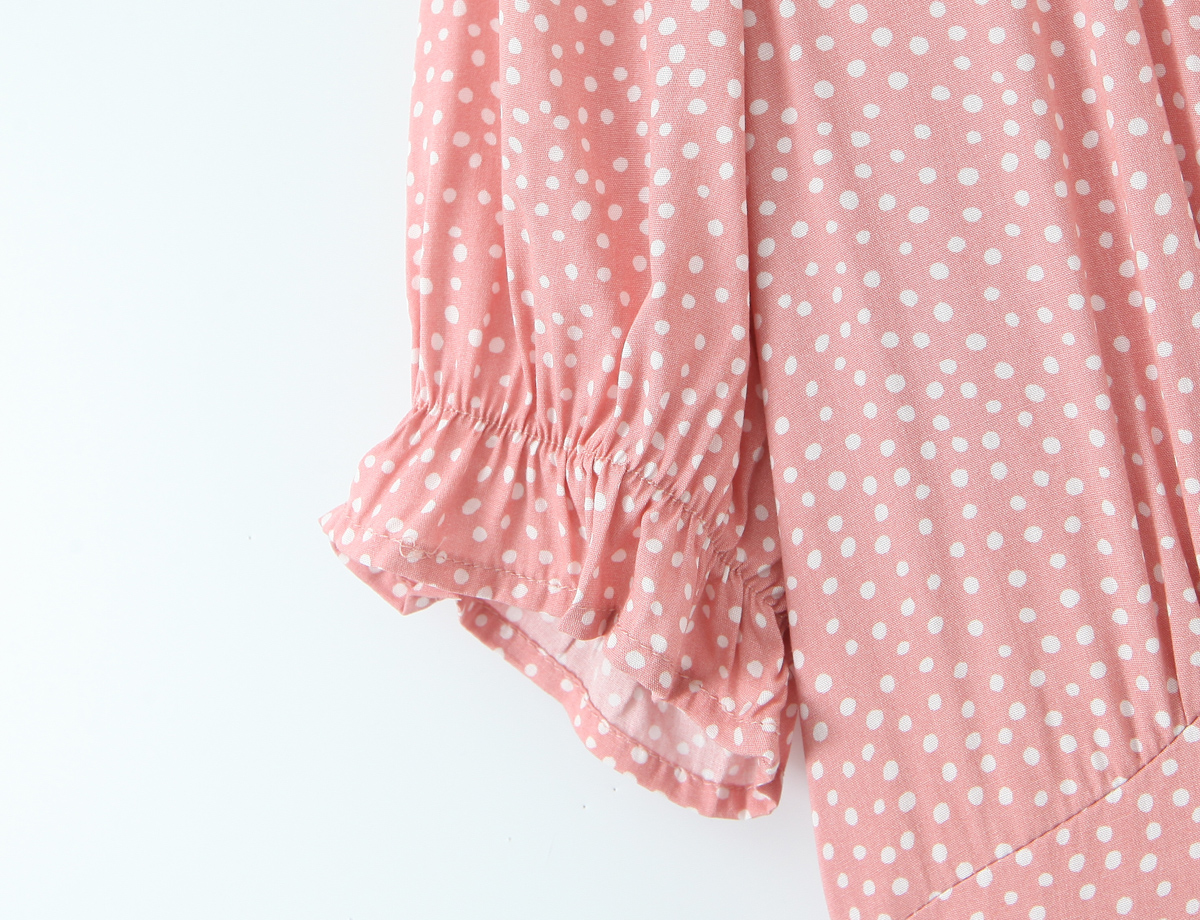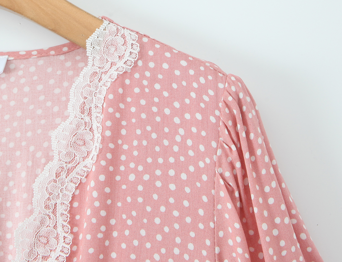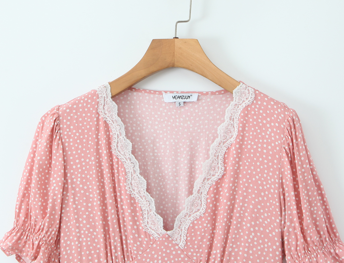 Women Clothing Spring Lace Polka Dot Short Sleeve Dress